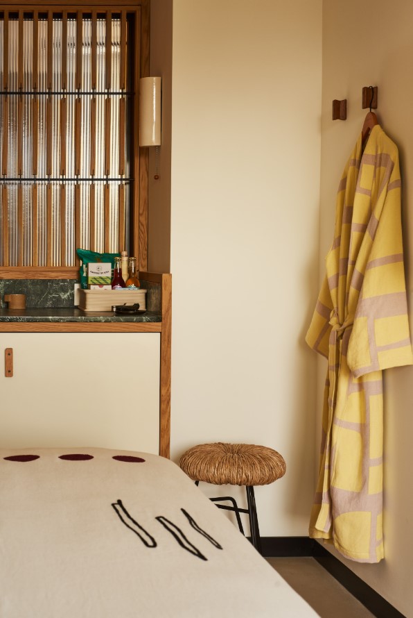 Η απαλή ρόμπα στον τοίχο θα γίνει από τα αγαπημένα σου αντικείμενα, όπως και οι κουβέρτες, όλα σχεδιασμένα από τη Salma Barakat. Θα θελήσεις να την αποκτήσεις σίγουρα και μπορείς, μαζί με πολλά ακόμα υπέροχα προϊόντα ελληνικών brands στο πωλητήριο του lobby, ανάμεσά τους και τοπικά παραδοσιακά μυρωδικά και βότανα από το Daphnis & Chloe, κοσμήματα από τη Vasiliki, ρούχα από το METHEN και πετσέτες θαλάσσης από το Μουσείο Αλέκος Φασιανός. Όλη η συλλογή μια ακόμη ένδειξη της τέχνης και του design που υπογράφει ο χώρος.