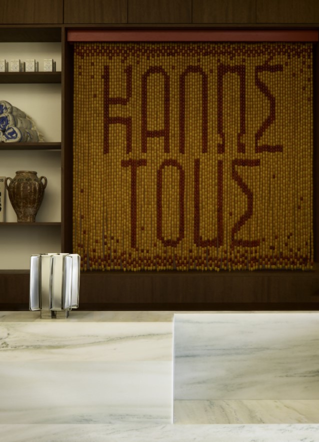 Το περιβάλλον είναι ζεστό και φιλόξενο, γεμάτο έμπνευση από διαφορετικές κουλτούρες, ενώ παράλληλα παραμένει συνδεδεμένο με την ελληνική ταυτότητα. Ένας χώρος που σε ταξιδεύει χωρίς να απομακρύνεται από τη γείωση και την αυθεντικότητα, αποφεύγοντας τη σοβαροφάνεια και την επιτήδευση, αλλά είναι γεμάτος ζωή και χαρακτήρα.