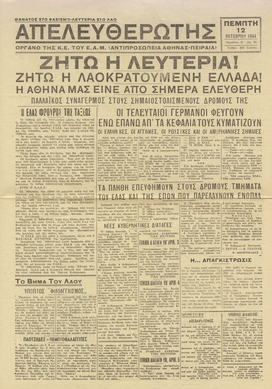 Ο Δήμος Αθηναίων παρουσιάζει τη μεγάλη ιστορική έκθεση «1974 & 1944: Η Αθήνα γιορτάζει την ελευθερία της» που έρχεται στο Κέντρο Τεχνών του Οργανισμού Πολιτισμού, Αθλητισμού και Νεολαίας του Δήμου Αθηναίων (ΟΠΑΝΔΑ) στο Πάρκο Ελευθερίας από τις 23 Ιουλίου έως τις 28 Οκτωβρίου με ελεύθερη είσοδο.