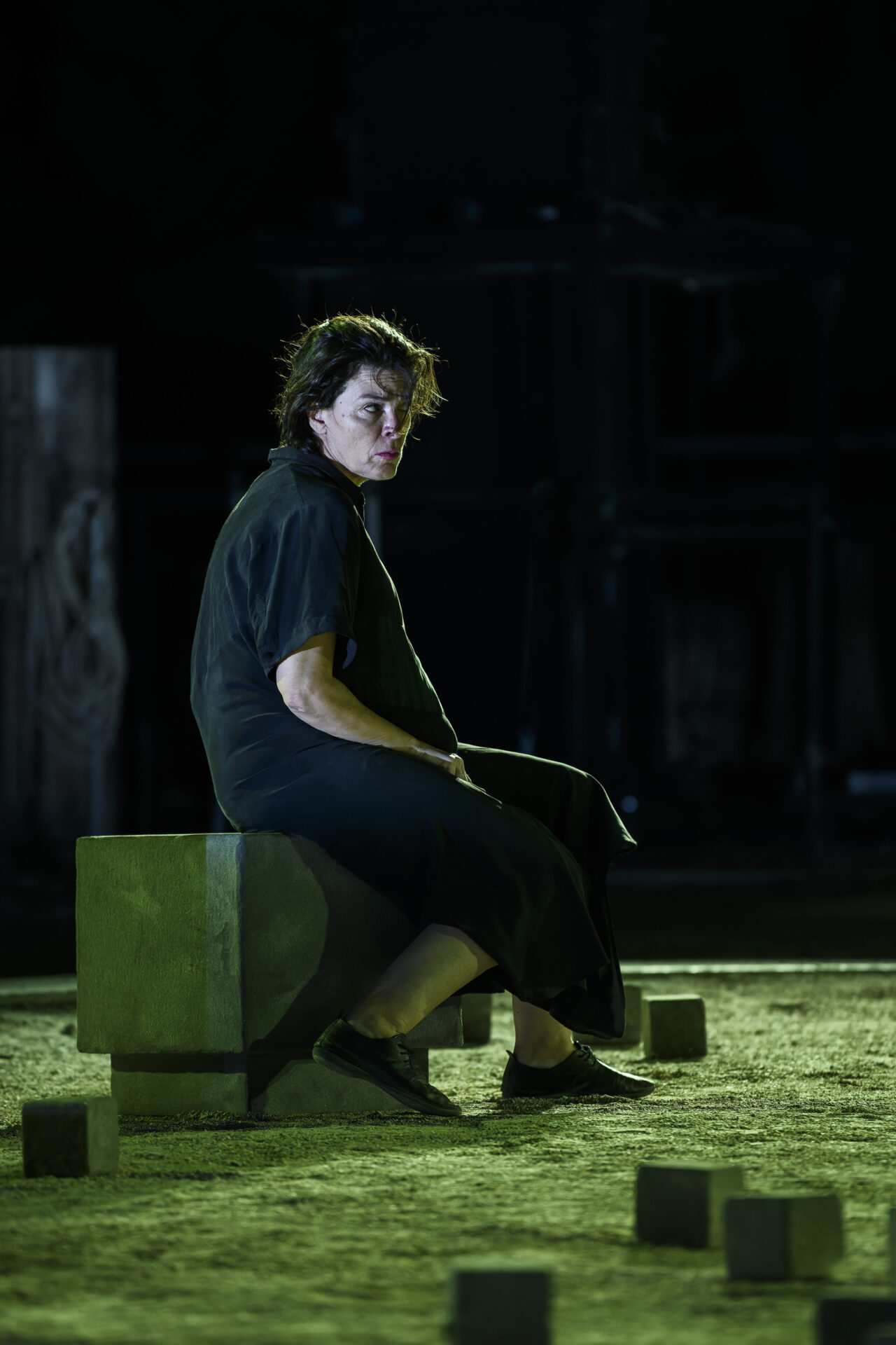 Στηριζόμενη στη μετάφραση του Γ. Β. Τσοκόπουλου, η σκηνοθέτιδα και ηθοποιός επεξεργάζεται δραματουργικά και σκηνοθετικά ένα έργο που εγείρει νευραλγικά ερωτήματα και με τον δυναμισμό που τη χαρακτηρίζει, αναλαμβάνει τον ρόλο της Γυναίκας.