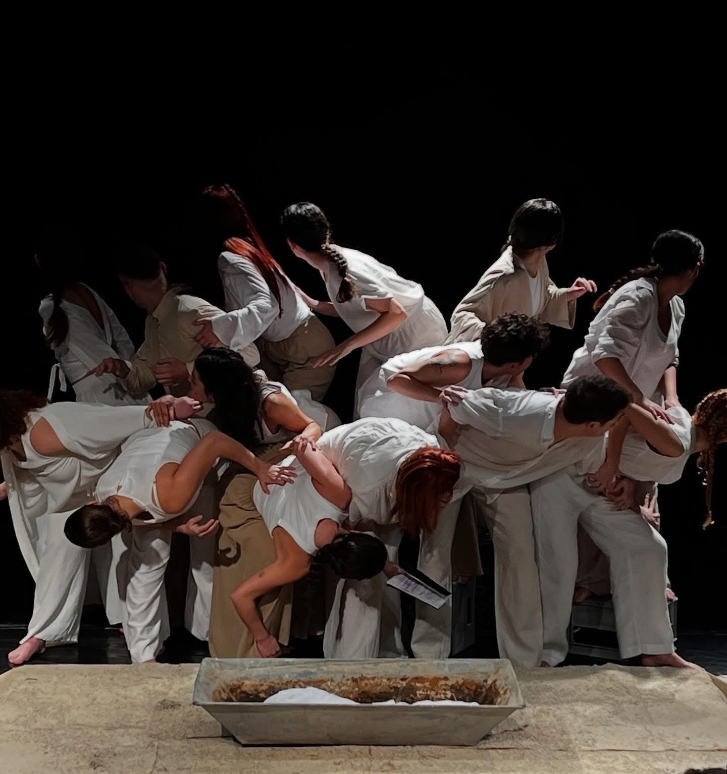 Ως άψογα συντονισμένα μέλη μιας συμφωνικής ορχήστρας, μετατρέπουν την περίφημη γλώσσα του Παπαδιαμάντη -ομιλούμενη λαϊκή γλώσσα, σκιαθίτικοι ιδιωματισμοί, μικτή καθαρεύουσα με στοιχεία δημοτικής, αλλά και αμιγής καθαρεύουσα- σε μουσικοθεατρικές χειρονομίες, προβάλλοντας τον ηχητικό πλούτο του κειμένου και μετατρέποντας την «εσωτερική μουσική» σε σκηνική δράση. Όλα ορίζονται από μια τρισδιάστατη παρτιτούρα όπου κάθε ήχος, κάθε χειρονομία, ομαδικές και ατομικές χορογραφίες, πολυφωνικά τραγούδια και εμβόλιμα δραματικά επεισόδια δημιουργούν οπτικές και ηχητικές εικόνες και οδηγούν σε μια πολυσχιδή χορική αφήγηση.
