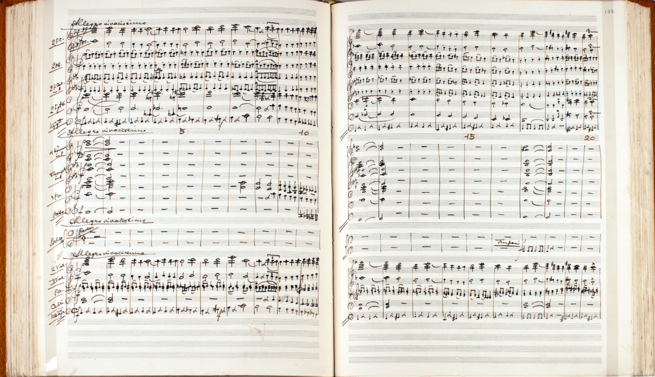 «Γένεσις», η παρτιτούρα του Μίκη Θεοδωράκη από την μελοποίηση του Άξιον Εστί του Οδυσσέα Ελύτη. Δωρεά Μίκη Θεοδωράκη, Μουσείο Μπενάκη / Πινακοθήκη Γκίκα