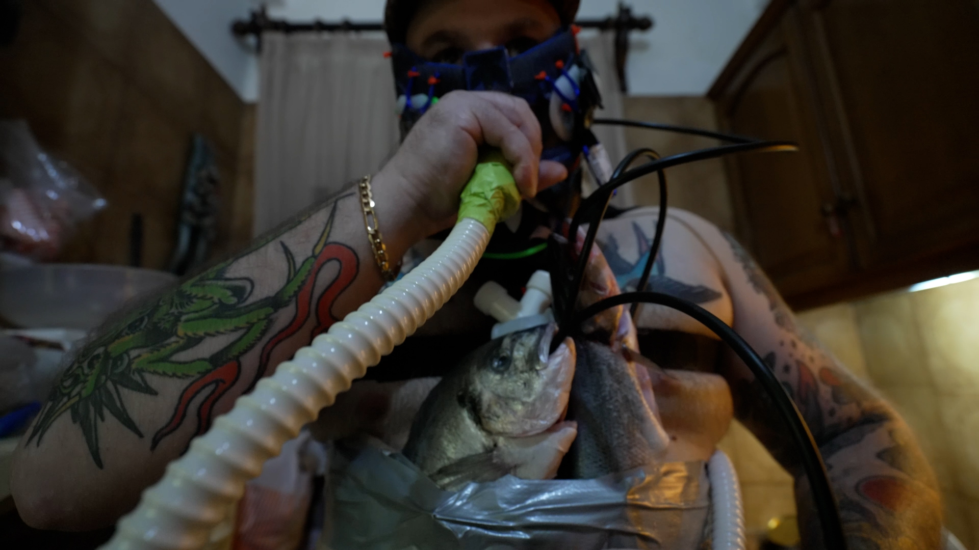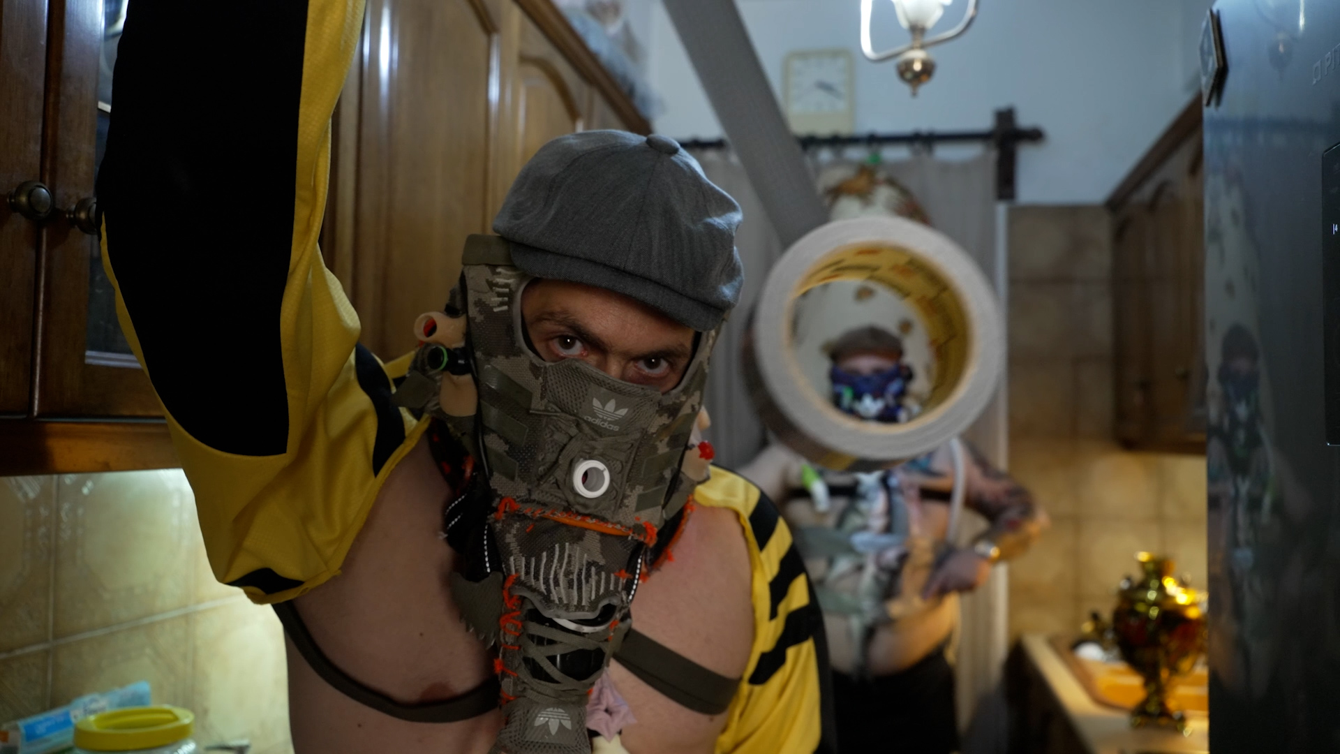 Στη νέα του έκθεση, πρωταγωνιστής είναι ο “GZPRM GOPNIK”, μια περσόνα που βρίσκουμε και στα τελευταία έργα του, βγαλμένη από την υποκουλτούρα των Σλάβων και συγκεκριμένα των Ρώσων γκόπνικ. Η απόμακρη αυτή κοινωνική ομάδα χαρακτηρίζεται από τις σουρεαλιστικές αναρτήσεις τους στο ίντερνετ: ντυμένοι με αθλητικά Adidas και τραγιάσκα, χορεύουν πρώιμη τέκνο, άλλοτε ταΐζουν και αγκαλιάζουν αρκούδες ή ποζάρουν με τεράστια ψάρια στο σαλόνι τους. Στο χώρο της Gallery, τα στοιχεία αυτά συγκλίνουν και δημιουργούν ένα εμβυθιστικό σκηνικό — μια φωλιά αρκούδας. Με χιούμορ, αλλά και ωμότητα, σε μια ιδιόμορφη σάτιρα του δυτικού στερεότυπου για τη μετά-σοβιετική Ρωσία, ο Σταφυλάκης μας καλεί να συναντήσουμε το «πολιτικό», τον συγκρουσιακό ορίζοντα των πραγμάτων.