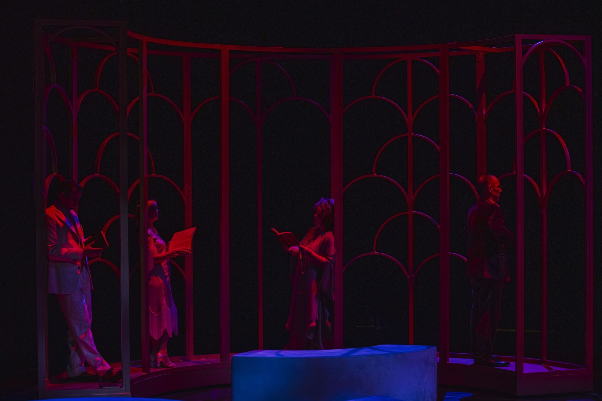 Τους ρόλους ερμηνεύουν οι: Δημήτρης Σιγαλός (Βαρονάς), Βαγγέλης Μανιάτης (Λατρούδης), Τζούλια Σουγλάκου (Κυρία Λατρούδη), Χρύσα Μαλιαμάνη (Άννα), Νικόλας Μαραζιώτης (Αδριανός), Μαρισία Παπαλεξίου (Ρίτα), Αντώνης Κυριακάκης (Δημοσθένης) και ο αρχιμουσικός Νίκος Βασιλείου (ενωματάρχης).