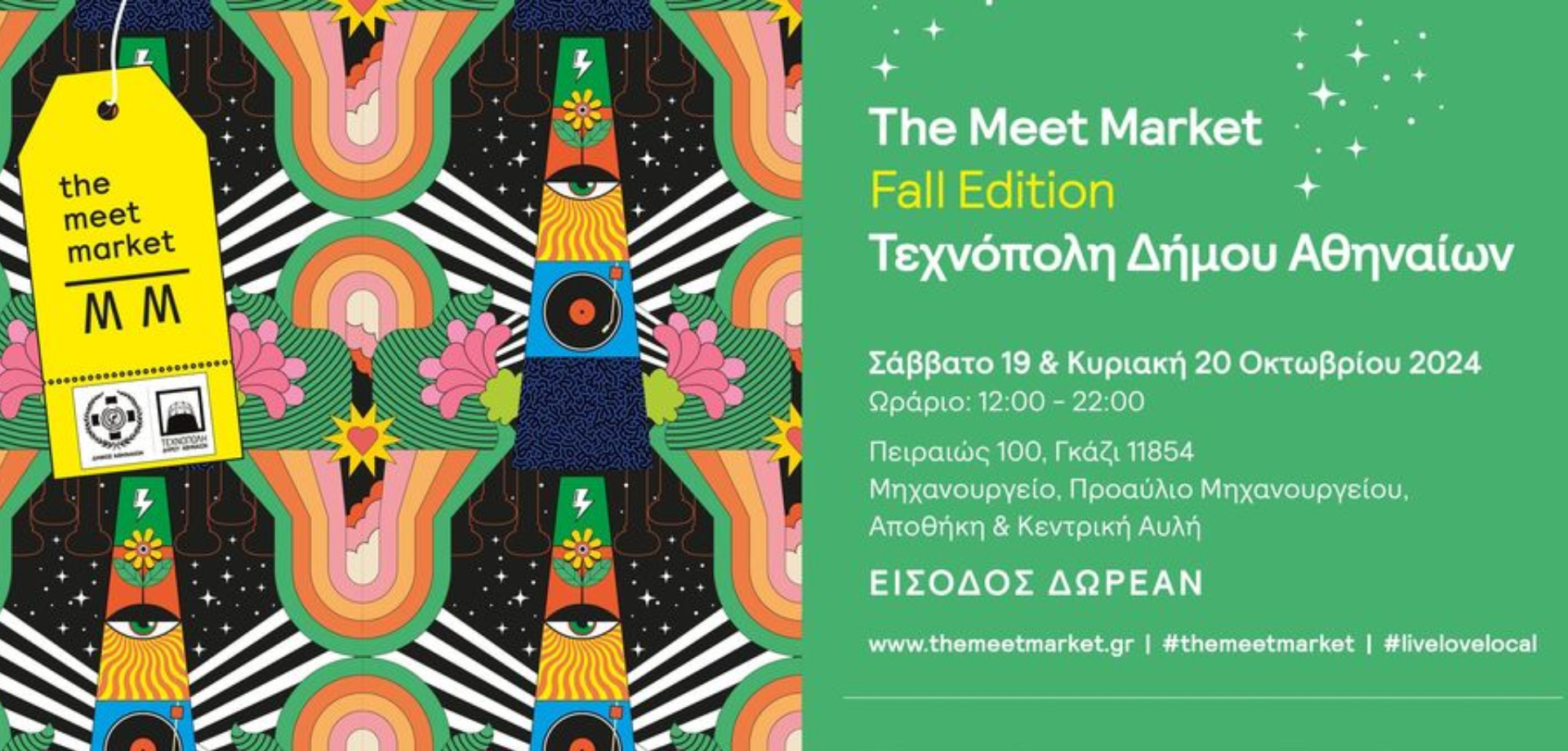 Μένοντας πιστοί στο motto “First a Meet, then a Market”, όλα τα παραπάνω θα συμβαίνουν παράλληλα με back-to-back DJ sets, δραστηριότητες και ευχάριστες εκπλήξεις για τους μικρούς μας επισκέπτες – εντελώς δωρεάν – ενώ, με μία βόλτα από το Κεντρικό Ταμείο / Info point, μπορείτε όλοι να πάρετε μέρος στη #ΜεγάληΚλήρωση, όπου 3 τυχεροί νικητές θα κερδίσουν ένα καλάθι γεμάτο δώρα από τους εκθέτες μας.