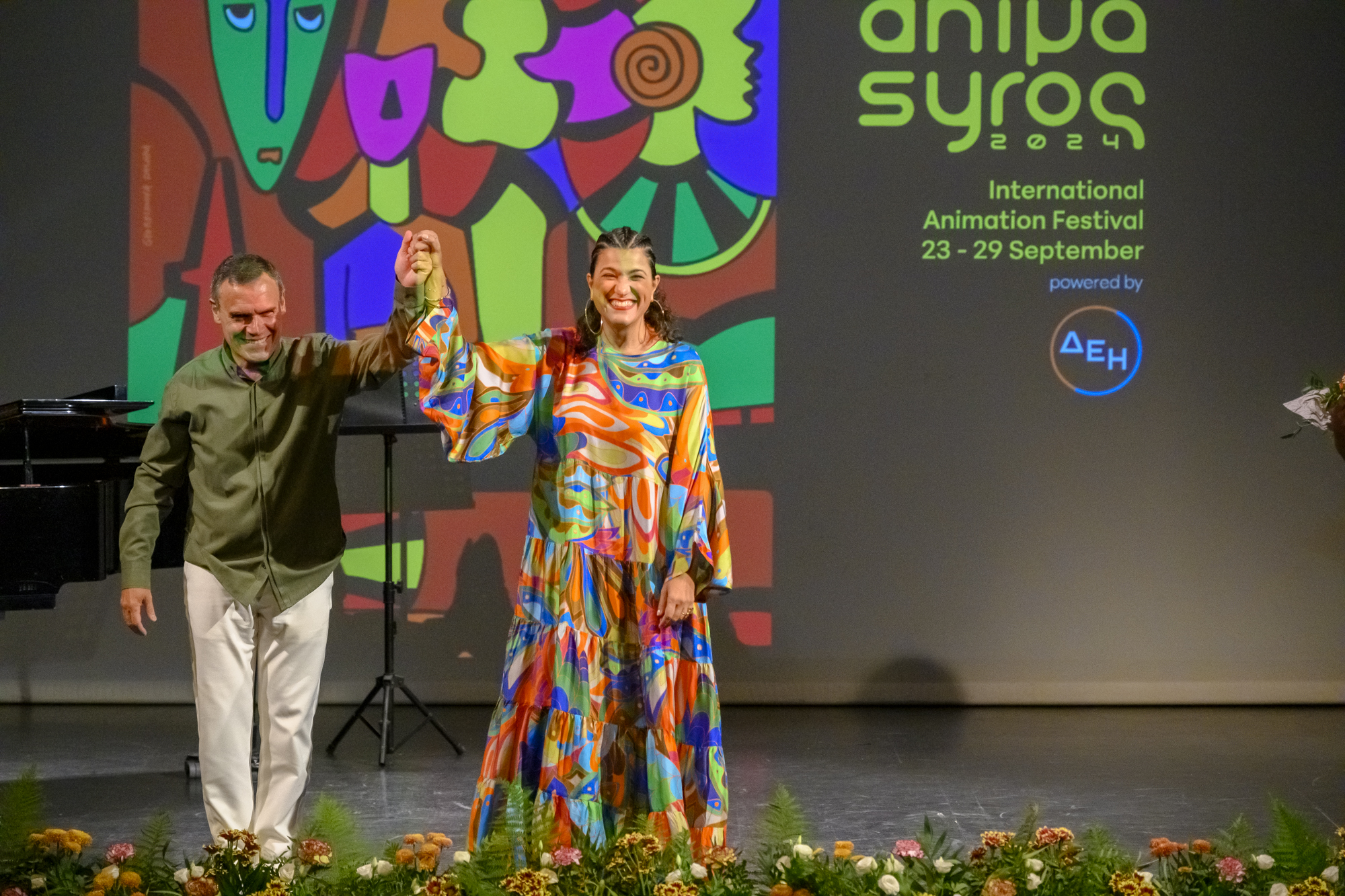 Την αυλαία του φετινού ANIMASYROS 2024 powered by ΔΕΗ άνοιξαν η καταξιωμένη μεσόφωνος Άρτεμις Μπόγρη συνοδευόμενη από τον πιανίστα Δημήτρη Γιάκα με μία pop-up συναυλία όπερας.