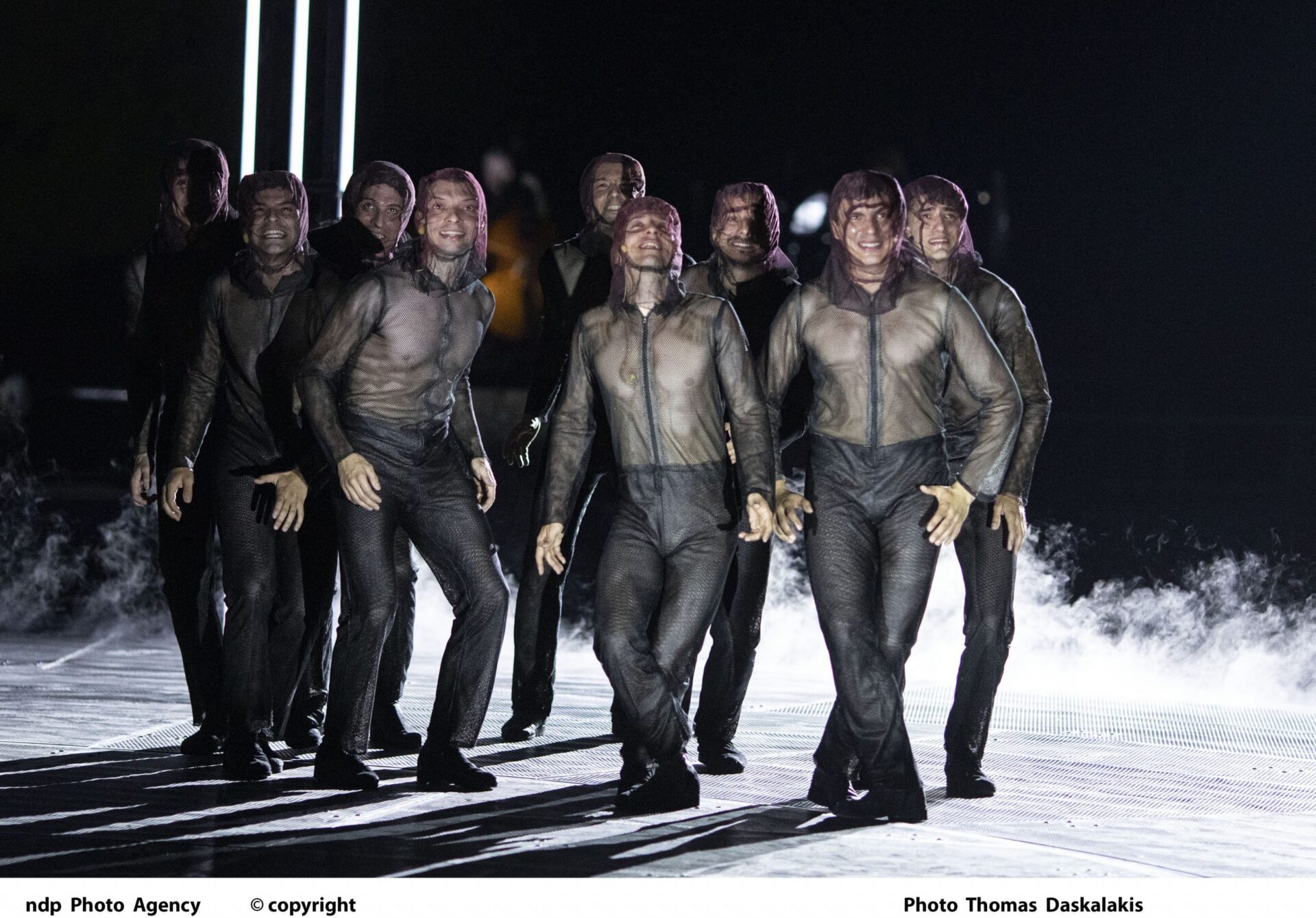 Αισθάνομαι ότι ο έμπειρος Άγγελος Μέντης ατύχησε στη δημιουργία των κοστουμιών τόσο αισθητικά, όσο και πρακτικά. Νομίζω ότι η διαφάνεια άφηνε εκτεθειμένα και ευάλωτα τα σώματα επί σκηνής, και το συνθετικό ύφασμα ανέβαζε τον βαθμό δυσκολίας στις ήδη αδυσώπητες σκηνικές τους συνθήκες.