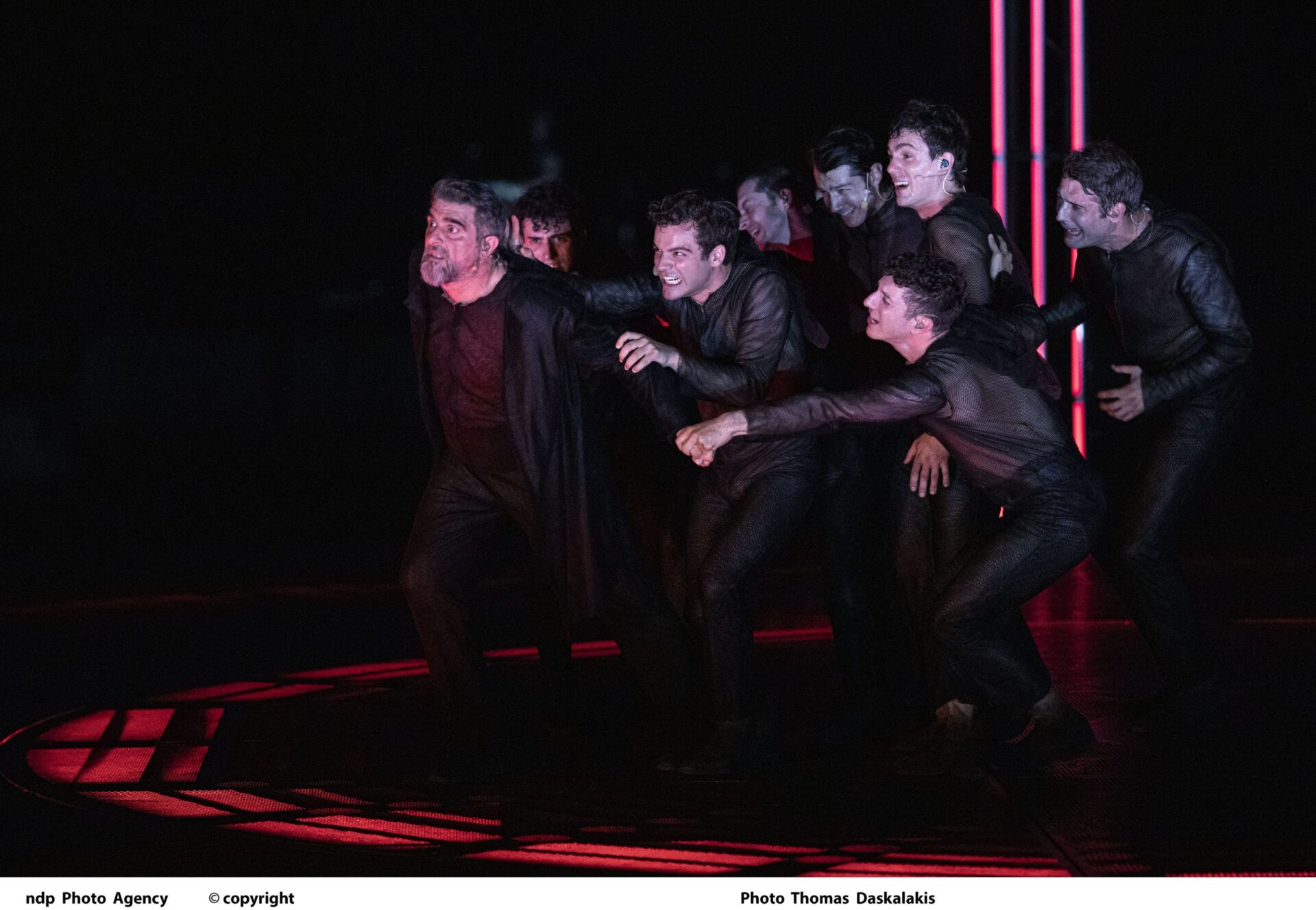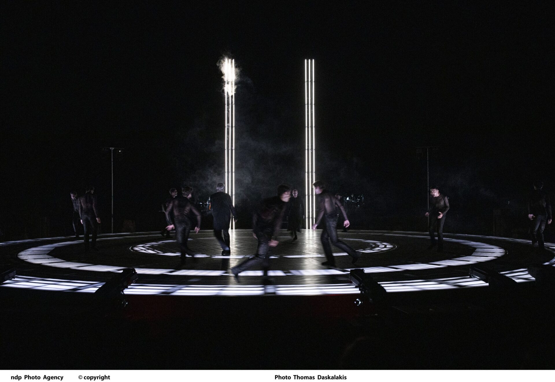 Παρακολουθήσαμε μια μονολιθική, βαρετή, άτεγκτη, ανέπνευστη, τεχνοκρατική σκηνοθεσία που τη συνόδευε μια αντίστοιχη σκηνογραφία (Ulrich Rasche) που αναπτύχθηκε σε ένα επιθετικό, αφιλόξενο φωτιστικό και ηχητικό σύμπαν, το οποίο δημιούργησαν οι φωτισμοί (μια άτυχη στιγμή της πολυβραβευμένης Ελευθερίας Ντεκώ) και η μουσική καθώς και ο σχεδιασμός ήχου του Alfred Brooks.