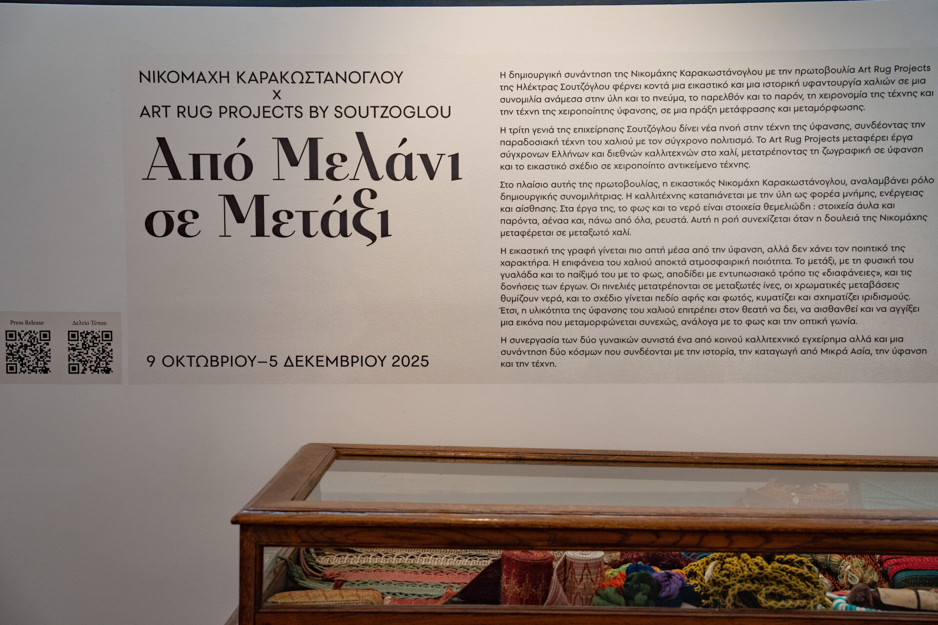του Μουσείου Μπενάκη, στην οδό Πολυφήμου 6 στα Κάτω Πετράλωνα. Στον εκθεσιακό χώρο που φιλοξενεί την έκθεση συναντήθηκα με αυτές τις τρεις γυναίκες κι αφού βγάλαμε τις φωτογραφίες μας καθίσαμε πάνω στο μεταξωτό χαλί με τη Νικομάχη και την Ηλέκτρα που αλληλοσυμπλήρωναν η μία την άλλη και ξεδίπλωναν τις μεταξένιες τους ιστορίες.