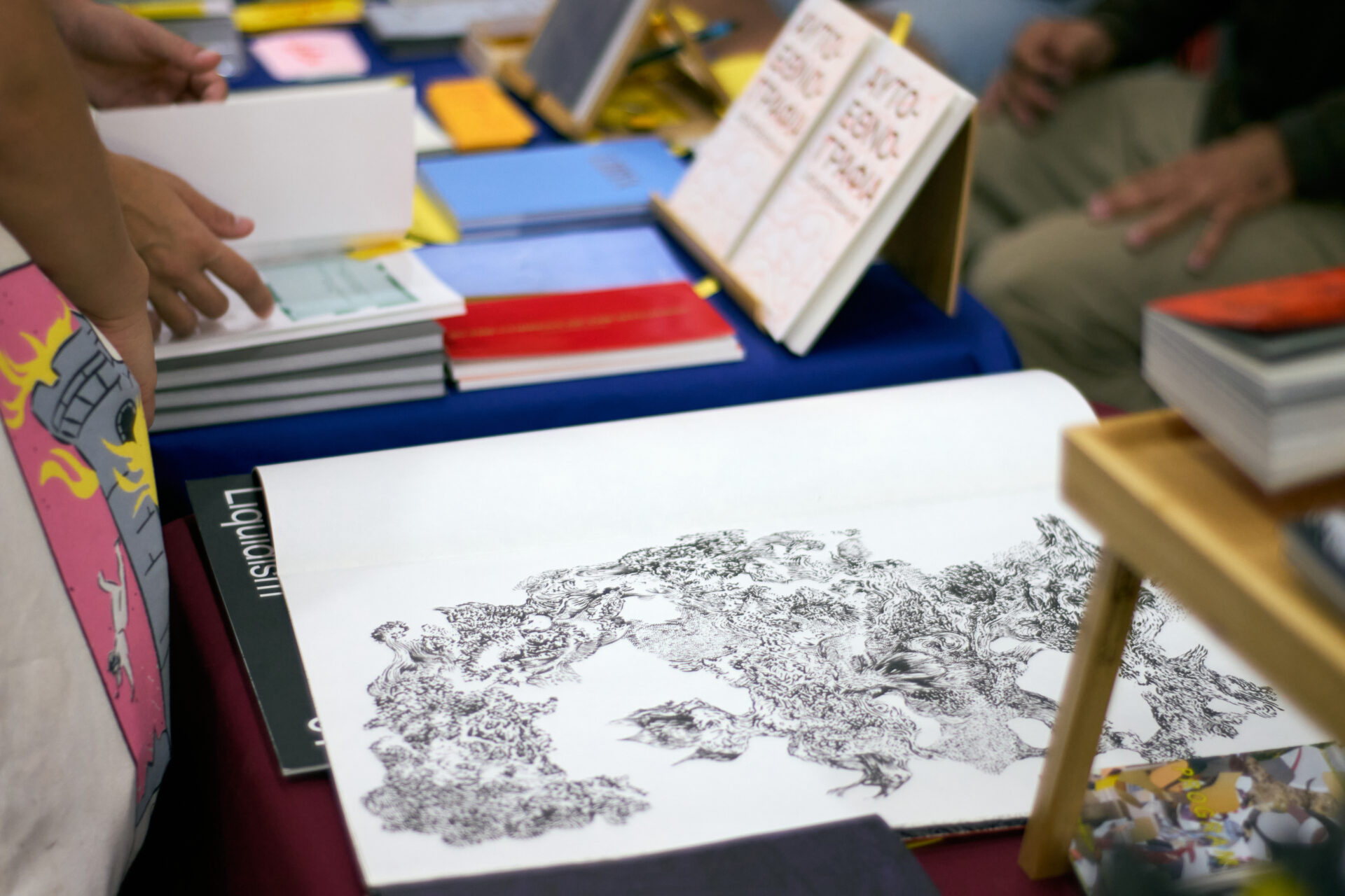 1399 (Tehran), 51 Personae (Shanghai), Arurkokk (Ioannina), Asparagus plumosa (Athens), Avtonomi Akadimia (Athens), Big black mountain the darkness never ever comes (Athens), Black Lodge Press (London), Blind Mind Editions (Athens), Blob Shop Collective (Rotterdam), Bronze Age (London), Cairo Art Book Fair (Cairo), Convoy Royal (Avlida), Cube Art Editions (Athens), Danai Simou (Athens), Decadence Comics (Copenhagen), Deniz Beser / Heyt be! Fanzin (Istanbul, Vienna), Desired Landscapes (Athens), DOLCE (Athens), Ediciones Caradura (Tijuana), Edition Patrick Frey (Zurich), Editions jojo (New Delhi), Editorial Tubito (Buenos Aires), Edizione Multicolore (Leipzig), Ejemplar (Valencia), ΕΜΣΤ (National Museum of Contemporary Art), Everyedition (Zurich), FACzine (Barcelona), FLEE (Paris), Folded City (Athens), FRMK [ΦΡΜΚ] (Athens), futura (Athens), gibbi (Brescia), Humboldt Books (Milan), Hyper Hypo (Athens), INKPRESS (Athens), IPC / Independent Paper Consortium (Paris), Jumbo press (Barcelona), JZZP (Hong Kong), K-Gold Temporary Gallery (Lesvos), Kati Akraio (Athens), KATSARIDA PRESS (Athens), KBJ Publishing (Svendborg), KEDA*PRESS (Thessaloniki), Kona Books (Tbilisi), Kudla Werkstatt (Prague), kyklàda.press / Time Based Editions (Athens), Lafat Bordieu (Barcelona / Santiago de Chile), Lalava (Athens), Lesbianas Concentradas (Berlin), Lia Nalbantidou & L.LAB (Thessaloniki), Local Gr0up (Kiev), Lonely Cooks Collected (Athens), MAAT BOOKS (Athens), Margarita Athanasiou (Athens), Marusya Press (MA.P) (Oakland), Michalis Pichler (Berlin), MISC ATHENS (Athens), NERO (Rome), Never Brush My Teeth (Athens), Obedbooks (Paris), Oficyna Peryferie (Warsaw), Opuntia Visual (New York, Mexico City), Paprika Lab (Thessaloniki), Pararoja (Tirana), PERAMO (Athens), Pink House press (Syros), Press Press (Milan), PrivatePrint (Skopje), Profundo Ediciones (Buenos Aires), Risiko Press (Antwerp), Riso and Friends (Rijeka), Rosie’s Disobedient Press (Glasgow), SMUT Press (London), Spyros Rennt (Berlin), Studio Pangolin (Zagreb), sun/sun éditions (Montpellier), Sudest+Gird (Brussels), TEFRA90 (Athens), Tehran Zine (Tehran), These are a Few of our Favorite Things / Orestis Vlahos (Athens), Two Spiky Gorillaz (Thessaloniki), Untitled-1 (Athens), Vabiropula (Athens), Vexer Verlag (Berlin), VOID (Athens), Wendy’s Subway (New York), yusra magazine (Athens), ZINZINATTI (Szczecin), ZOETROPE ATHENS (Athens), ZONE (Rome), WARAQ (Beirut), Aνδρομάχη Kοκκινού (Athens), Η Κιουρι@ (Athens), ΗΓΗ (Athens), ΜΠΑΤΑΡΙΑ (Athens), Ουαπίτι (Athens), ΤΕΦΛΟΝ (Athens).
