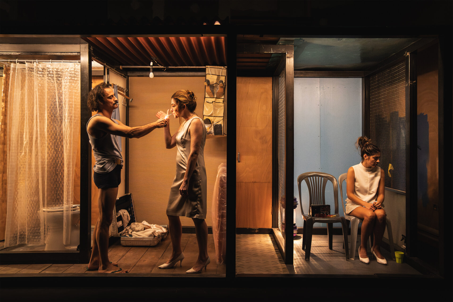 Και μόνο το σκηνικό της παράστασης δημιουργεί μια αίσθηση οριακή. Μια αίσθηση ασφυξίας.