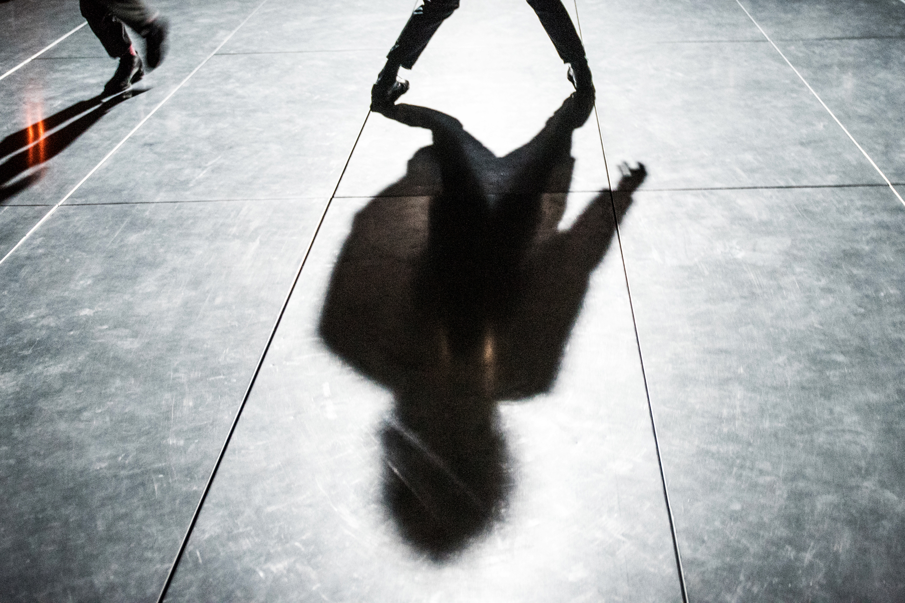 Βηματισμοί μπρος, πίσω, αριστερά, δεξιά — φαινομενικά ασύνδετοι. Κορμιά που τέμνονται, σώματα που συναντιούνται πάνω στην ορθογώνια πλατφόρμα. Πέντε άνθρωποι. Βλέμματα. Λέξεις ανείπωτες, σκιαγραφημένες σχεδόν στα πρόσωπά τους. Κορμιά εν κινήσει, σε έναν κόσμο γυάλινο. Ένα κινησιολογικό, ανθρώπινο, παραστασιακό αφήγημα, αδιάκοπης ροής, που σε παρασύρει στη δίνη του.
