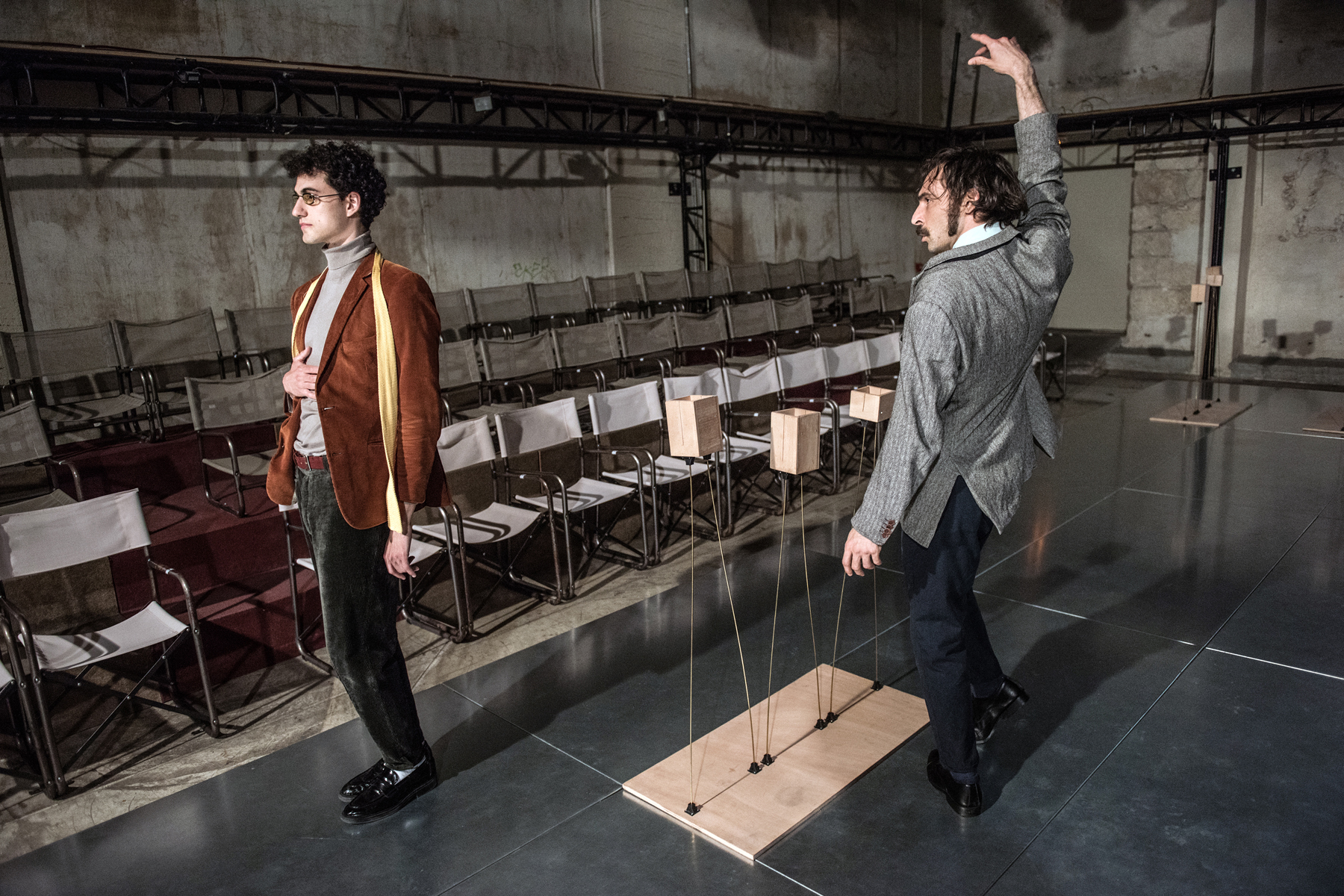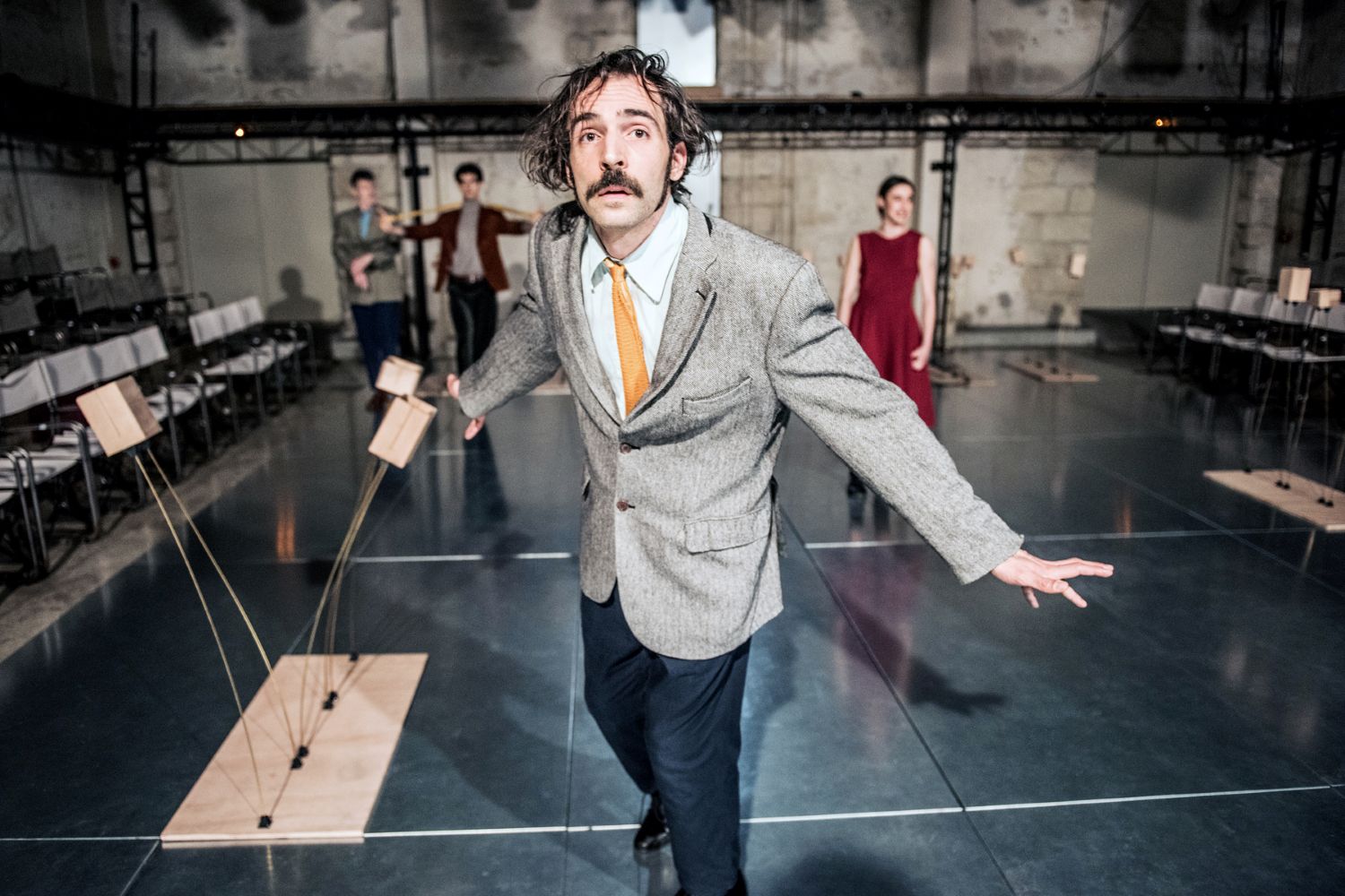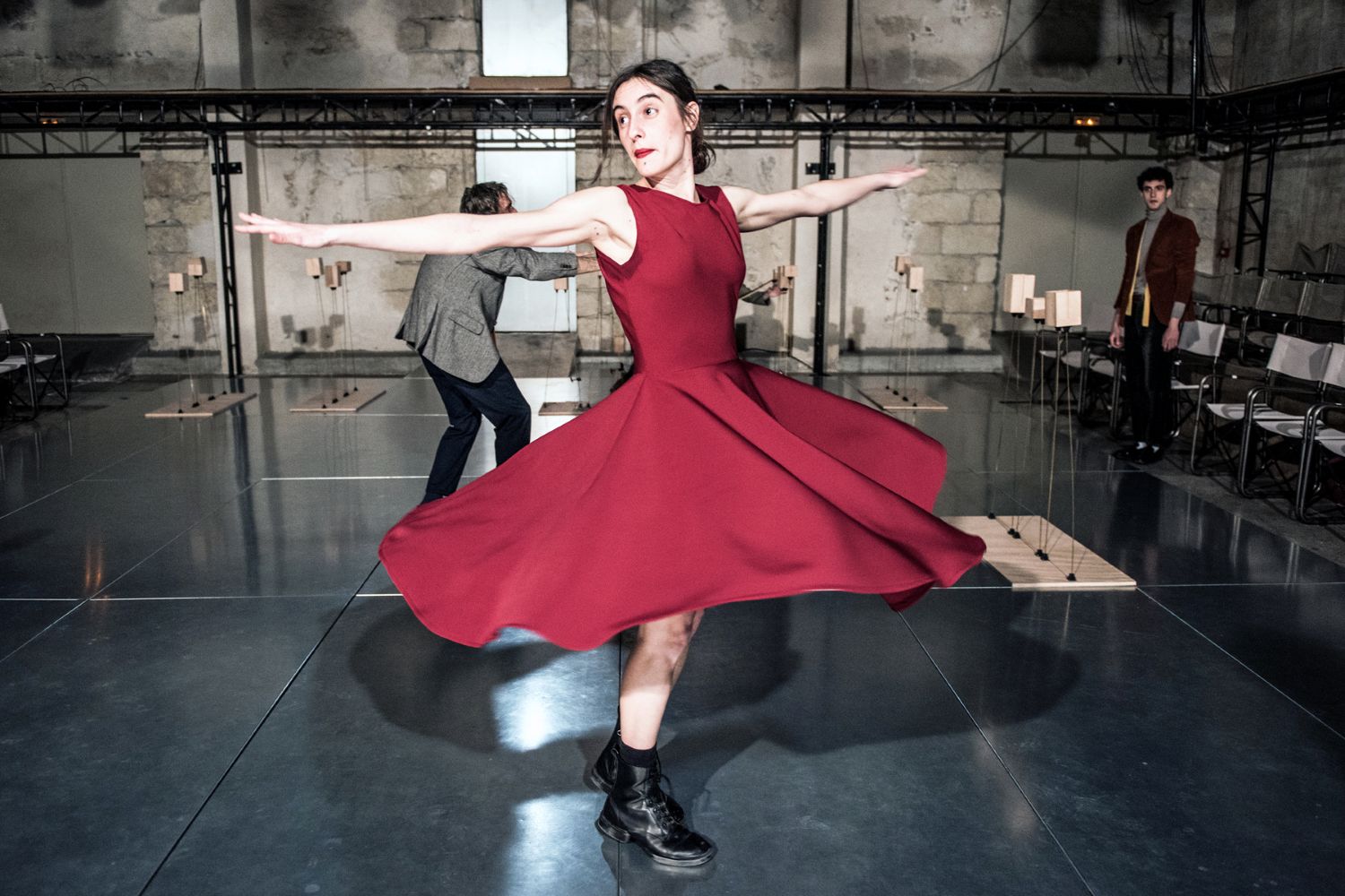 Αναρωτιέμαι αν στη σκηνή νιώθουν περισσότερο performers ή ηθοποιοί με αυστηρό κείμενο, με δεδομένες κινήσεις και ρωτάω τους συντελεστές που καθισμένοι έξω από τη σκηνή έχουμε πιάσει κουβέντα: