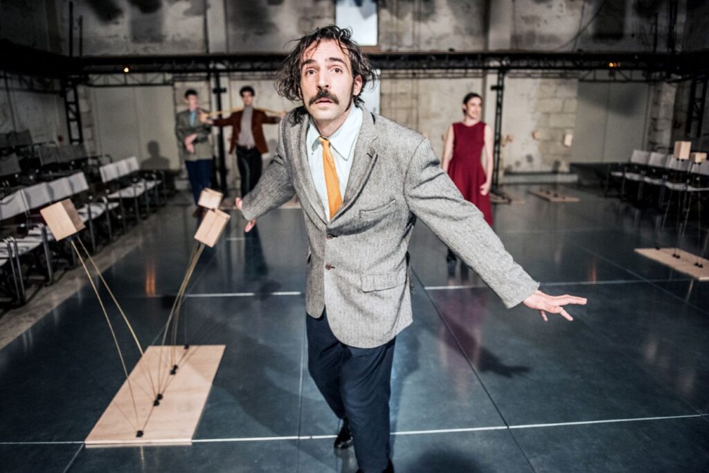 Γιατί η αρχή δεν έρχεται από τον λόγο ή από μια θεατρική δράση, αλλά μέσα από μια μουσική συνεύρεση. Μια φωνητική παρτιτούρα, ζεσταμένη επί σκηνής. Μια σύνθεση που γεννιέται εκείνη τη στιγμή, έμπνευση του παρόντος: