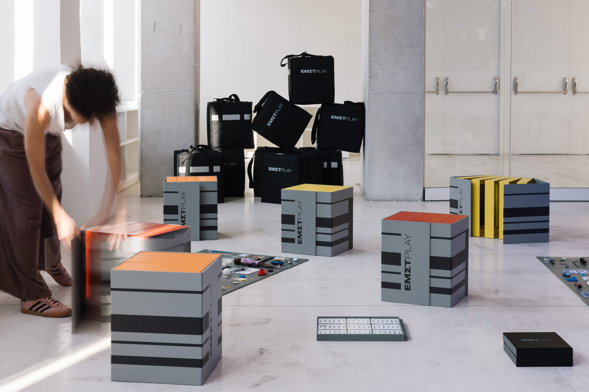 Μέσα σε αυτό το πλαίσιο δημιουργήθηκαν οι Μουσειοσκευές ΕΜΣΤPLAY – ειδικά σχεδιασμένες «βαλίτσες» που ταξιδεύουν σε άτομα ή φορείς που δεν έχουν εύκολη πρόσβαση στο Μουσείο. Το περιεχόμενό τους ενθαρρύνει τον πειραματισμό με τα εργαλεία και τη γλώσσα της σύγχρονης τέχνης, παρέχοντας πληροφορίες για το Μουσείο, επιλεγμένα έργα από τη Συλλογή του, καθώς και προτάσεις βιωματικών δράσεων. Μέσω αυτής της εμπειρίας, οι συμμετέχοντες εξοικειώνονται με τη σύγχρονη τέχνη και αναπτύσσουν μια νέα ματιά στον κόσμο γύρω τους.