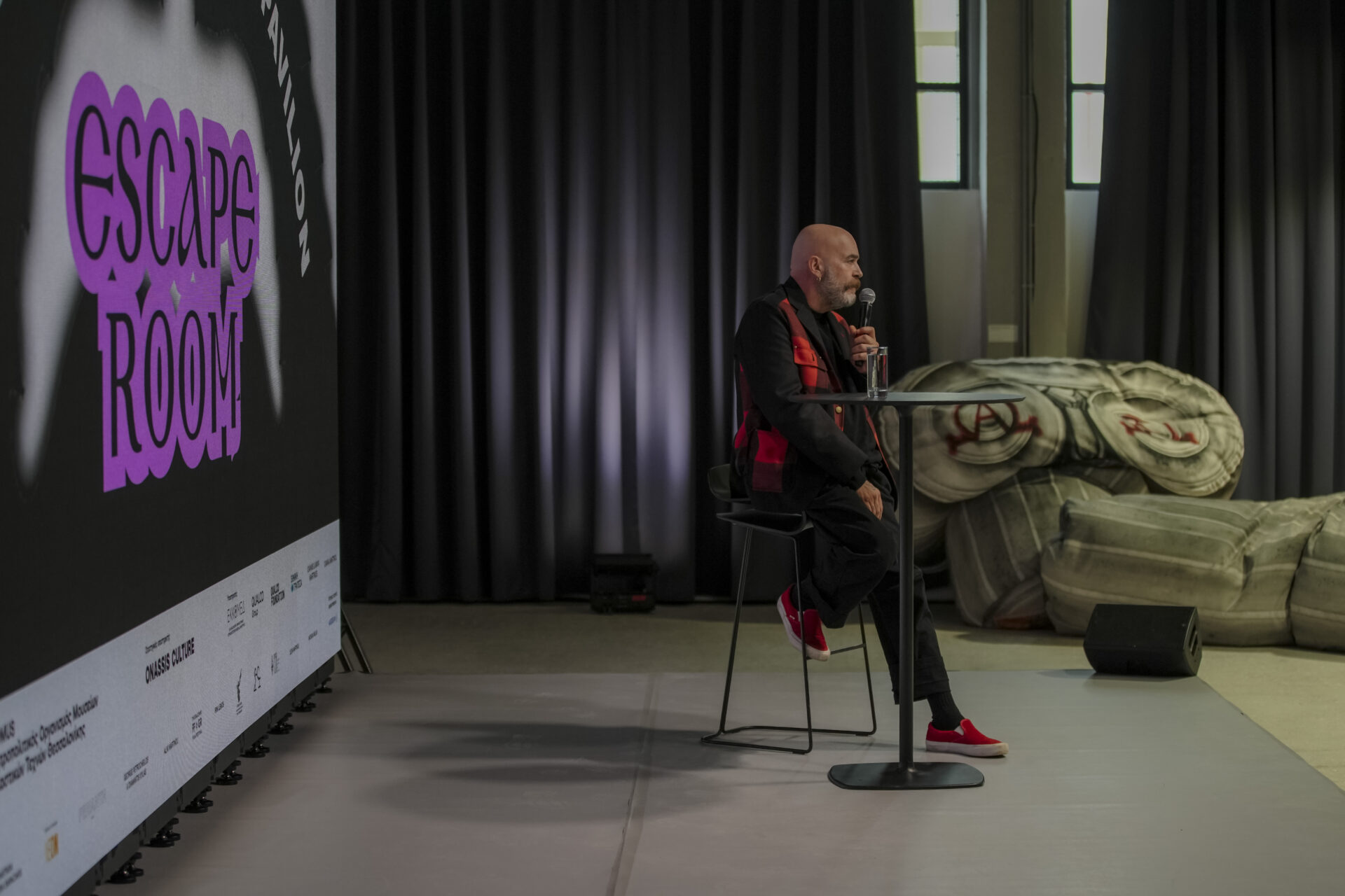 Απ’ όλα όσα λίγα επιτρέπονταν να ειπωθούν, καθώς όπως κι ο ίδιος ο Ανδρέας Αγγελιδάκης μας ενημέρωσε για την αυστηρότητα της Μπιενάλε, φαίνεται πως το Ελληνικό Περίπτερο θα προκαλέσει αίσθηση, θα είναι από αυτά που δεν θα προσπεράσει η μνήμη σου, θα έχει έντονη πολιτική χροιά, μηνύματα – ένας «ιδεολογικά φορτισμένος χώρος», όπως ανέφερε ο επιμελητής. Το “Escape Room” το περιέγραψαν ως ένα σύγχρονο Πλατωνικό Σπήλαιο, το οποίο αντίθετα από αυτό του Πλάτωνα, στο Σπήλαιο του Ανδρέα η αλήθεια δεν είναι μόνο μία.
