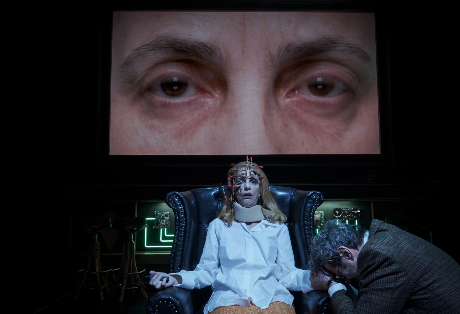 [ΕΚ] Κατά τη συγγραφή δαπάνησα κάποιες ώρες συνομιλίας με την Eliza, ένα πρωτόγονο chatbot, για να δω πώς λειτουργούσε. Κατόπιν, έψαξα την εξέλιξη στην αλληλεπίδραση των μεγάλων γλωσσικών μοντέλων με τον άνθρωπο και ενσωμάτωσα ως κείμενο μέρος του προγραμματιστικού κώδικα, για να σηματοδοτούνται οι εργασίες προγραμματισμού. Αυτό στην παράσταση φαίνεται πάνω σε μια υπερσύγχρονη οθόνη, και φυσικά γράφτηκε και εξελίχθηκε με τη βοήθεια και τις γνώσεις του επιστημονικού συνεργάτη μας, του Γιάννη, και του προγραμματιστή που συνεργαστήκαμε, του Γιώργου Καλλέργη. Υπάρχει και ένα βίντεο που δημιούργησε ο Χρήστος Συμεωνίδης, αλλά πέραν τούτων δεν υπάρχει στην παράσταση περισσότερη τεχνολογία, όλα λύνονται με πιο «αναλογικό» τρόπο. Από εκεί και πέρα, το έργο αφήνει το περιθώριο για εκτεταμένη χρήση της τεχνολογίας, αν και δεν είναι αυτό το κυριότερο θέμα του.