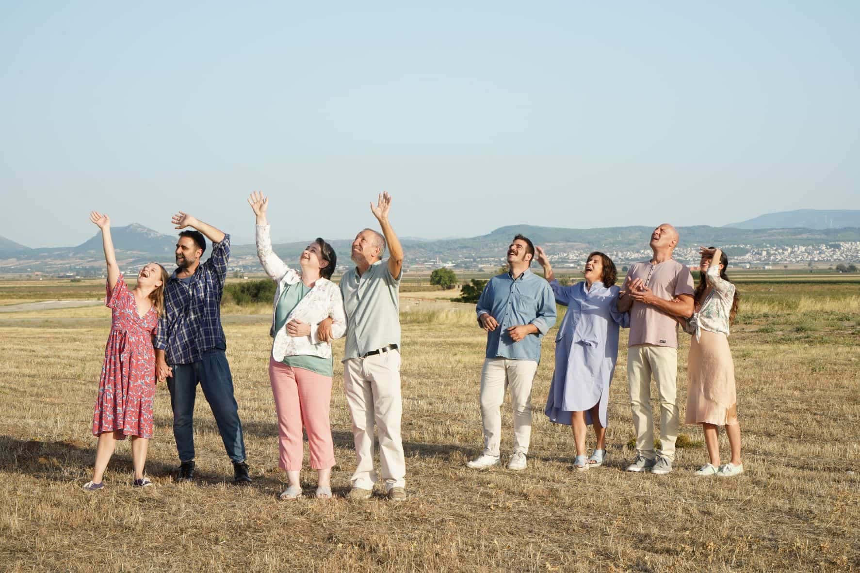 Λίγο πριν ανακοινωθεί επίσημα, βρεθήκαμε συντροφιά με τον θίασο σε μια ειδική αποστολή. Προορισμός μας ένα μέρος στην καρδιά της Βοιωτίας για τις ανάγκες τις φωτογράφισης. Μια φωτογράφιση ψηλά στους αιθέρες. Με ποιο τρόπο; Μέσα σε ένα πολύχρωμο αερόστατο. Εκατοντάδες μέτρα πολύχρωμου υφάσματος και ένα ψάθινο μεγάλο καλάθι θα φιλοξενήσει τον θίασο για τα πρώτα επίσημα κλικς. Ένας θίασος στους αιθέρες. Ένας θίασος που θα ξεκινήσει το ταξίδι του από ψηλά για να προσγειωθεί στη σκηνή του θέατρου REX Σκηνή «Ελένη Παπαδάκη» και να ανοίξει αυλαία στις 28 Οκτωβρίου.