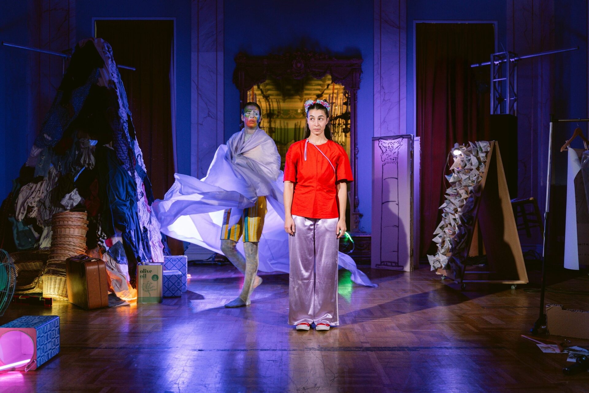Υποδύομαι τη Σελίν, ένα παιδί που αγαπά πολύ την τέχνη και το θέατρο και ανυπομονεί να παρακολουθήσει την παράσταση In Motion: Ένα άγαλμα που το ’σκασε στο ΔΘΠΕ. Η παράσταση ξεκινά πριν ακόμη χτυπήσει το τρίτο κουδούνι. Περιμένω κι εγώ μαζί με τους θεατές, μικρούς και μεγάλους, για να μπούμε στην αίθουσα, και κάπως έτσι ξεκινά μια κοινή διαδρομή και μια ζωντανή συνάντηση με το κοινό- για μένα, μια πολύ ιδιαίτερη εμπειρία! Μου αρέσει πολύ αυτή η συνθήκη, γιατί έχω την ευκαιρία να μιλήσω πραγματικά με το κοινό. Πολλές φορές βλέπω την αμηχανία όταν τους απευθύνομαι, αλλά ταυτόχρονα αισθάνομαι ότι μπαίνουν αβίαστα στην ιστορία μας και στην πραγματικότητα χωρίς να το καταλαβαίνουν… είναι οι ίδιοι η ιστορία μας. Όπως λέει και η Σελίν στο τέλος της παράστασης: «Χωρίς αυτούς τίποτα δεν θα είχε συμβεί». Μου αρέσει επίσης πολύ να βλέπω γονείς να συνεχίζουν τη συζήτηση με τα παιδιά τους μετά το τέλος, πάνω στα θέματα που θίγει η παράσταση.