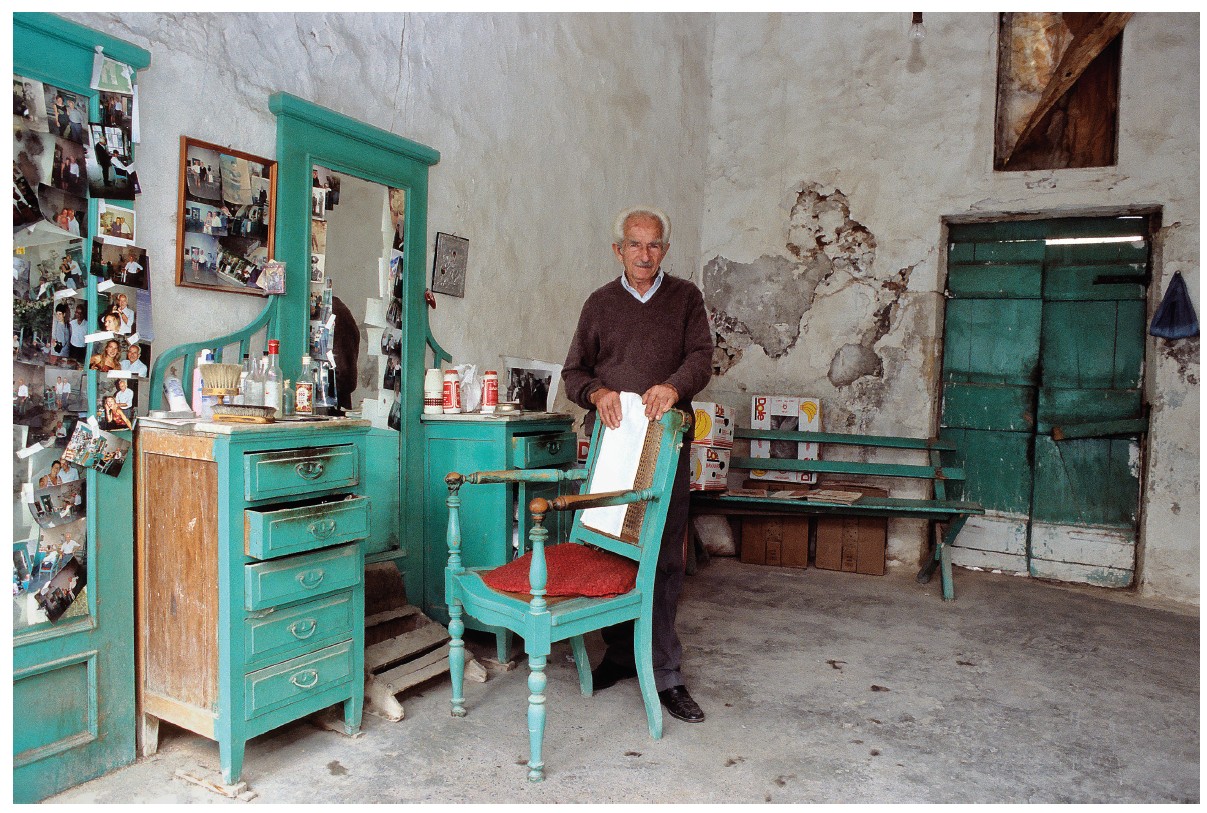 Και λίγο πιο πέρα, ο Μανόλης. Νεαρός είχε ενταχθεί στην Αντίσταση∙ ακόμη και σήμερα φορά τον κεφαλόδεσμο των ανταρτών. Με το εργαστήριο ξυλογλυπτικής του, θυμίζει σε κάθε περαστικό την ιστορία ενός τόπου που έμαθε να στέκεται όρθιος. Η ενδοχώρα στο βλέμμα του Μπερνάουερ μοιάζει με τη στέρεα γη, εκεί όπου ριζώνει η αντοχή.