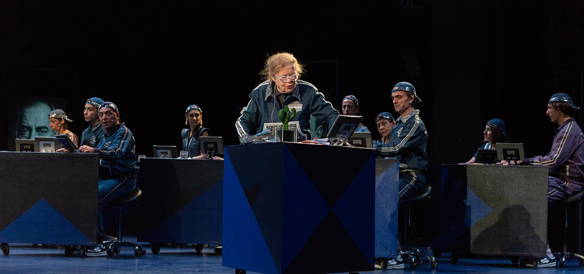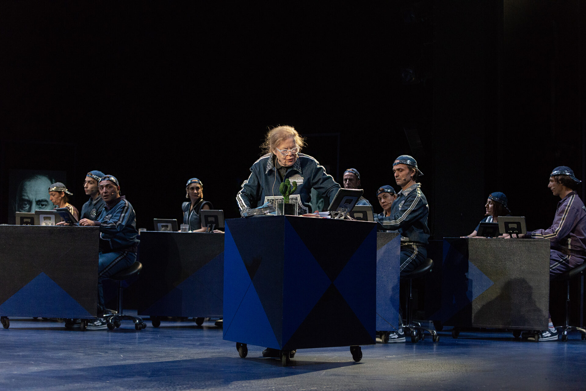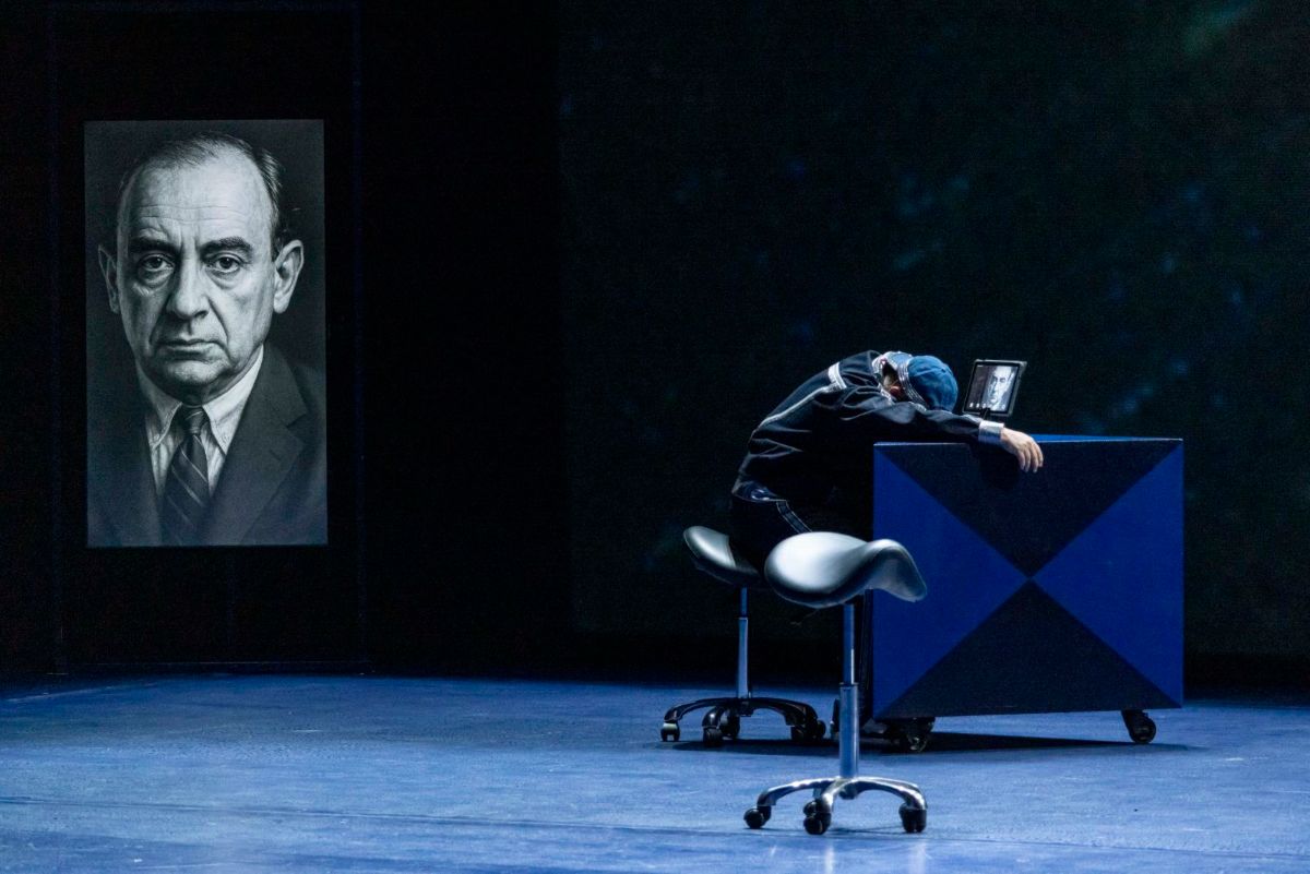 Αυτή την ανάσα την παίρνουμε, γιατί όλοι πρέπει να κάνουμε ανάπτυξη. Δηλαδή τι συμβαίνει γι’ αυτό το έργο; Είναι όλοι αυτοί μηχανές κατώτατης ποιότητας, την ώρα που αρχίζουν τα τρία τελευταία λεπτά του Τζον φον Νόιμαν κατά καιρούς αναβαθμίζονται σε διάφορα επίπεδα ηλεκτρονικών υπολογιστών. Δηλαδή γίνονται διάφορες γενιές υπολογιστών και ξαφνικά περνάνε στο επίπεδο τεχνητής νοημοσύνης. Άλλες φορές χωρίς συνείδηση, αλλά φτάνοντας μια τεχνητή νοημοσύνη ξαφνικά με συνείδηση, αυτή δηλαδή που θα μας καταπιεί. Και εκεί γίνεται ανάδυση, δηλαδή ο επιστήθιος φίλος του, οι γυναίκες του, η κόρη του, οι φίλοι, οι εχθροί του. Εμφανίζονται ενώ βλέπεις, αυτοί που είναι πιο μηχανικοί είναι αναβαθμισμένοι, αλλά δεν είναι τεχνητή νοημοσύνη, δεν είναι ας πούμε ΤΝ ή ΑΙ αυτό το λέμε εμείς ανάδυση. Γιατί σε αυτή την ανάδυση, εκεί υποστηρίζω εγώ ιδιαίτερα το θέατρο. Εκεί δηλαδή προσπαθώ να βάζω κώδικες που μπορώ να τους βάλω στον Μάκβεθ, στον Άμλετ, στη Λαίδη Μάκβεθ, δηλαδή στο βαθύ κλασικό θέατρο. Αυτό το θέατρο των μεγάλων αντιφάσεων, διότι σκέφτομαι ότι η τεχνητή νοημοσύνη μπορεί να γίνει τεχνητή νοημοσύνη αν κάνει αυτά σε ένα επίπεδο συνείδησης, αλλά στη νιοστή των αντιφάσεων σε σχέση με την ανθρώπινη συνείδηση, εκεί θα μας φάει. Αν φτάσει δηλαδή στην απόλυτη αντίφαση της αντίφασης της συνείδησης. Εκεί πιστεύω θα μας διαλύσει. Εκεί όμως ανταμώνω τους πολύ μεγάλους ρόλους του παρελθόντος. Αντιμετωπίζω ξαφνικά, ας πούμε, στον Τέλλερ τον Μάκβεθ ή τον Ριχάρδο τον Τρίτο για να είμαι πιο σαφής. Αντιμετωπίζω δηλαδή αυτή τη διαβολιά, το διαβολικό και το θεϊκό. Βλέπω τον Γκαίτε, ξαναβλέπω το Φάουστ με διαφορετικούς τρόπους από τους επιστήμονες, που εγώ βλέπω τρομερά το Φάουστ και όλη τη μυθολογία του Φάουστ και διάφορα τέτοια. Οπότε εγώ τώρα λέω ανακατωμένα αυτά.