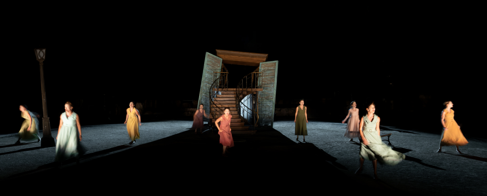 O νοσταλγικός φανοστάτης, η εντυπωσιακή ετοιμόρροπη είσοδος του αθηναϊκού νεοκλασικού με την αποσαρθρωμένη σκάλα που παραπέμπει στην είσοδο του παρηκμασμένου ανακτόρου των Μυκηνών. Τα ενδύματα των Ορέστη και Πυλάδη (Περικλής Σιούντας και Αναστάσης Ροϊλός) ως ευθεία αναφορά στους ένστολους αγγέλους (φαντάρους και ναύτες) του Τσαρούχη και το κοστούμι του Παιδαγωγού (Γιάννης Αναστασάκης) που «ζωντανεύει» τον πίνακα του ζωγράφου Ο ζωγράφος Θεόφιλος, 1965, που ανήκει στη συλλογή της Εθνικής Πινακοθήκης. Μια όμορφη ιδέα με βαθύτητα και γνώση που εξουδετερώθηκε από τις διαφορετικές χορογραφικές και μουσικές ποιότητες. Μουσική, εικονοποία και κίνηση επιδόθηκαν σε μια ακούσια αλληλοαναίρεση εις βάρος του τελικού σκηνικού αποτελέσματος. Το φωτιστικό σύμπαν του έμπειρου και επινοητικού Αλέκου Αναστασίου συνοδοιπορούσε αρμονικά με το σκηνοθετικό όραμα, αναδεικνύοντάς το.