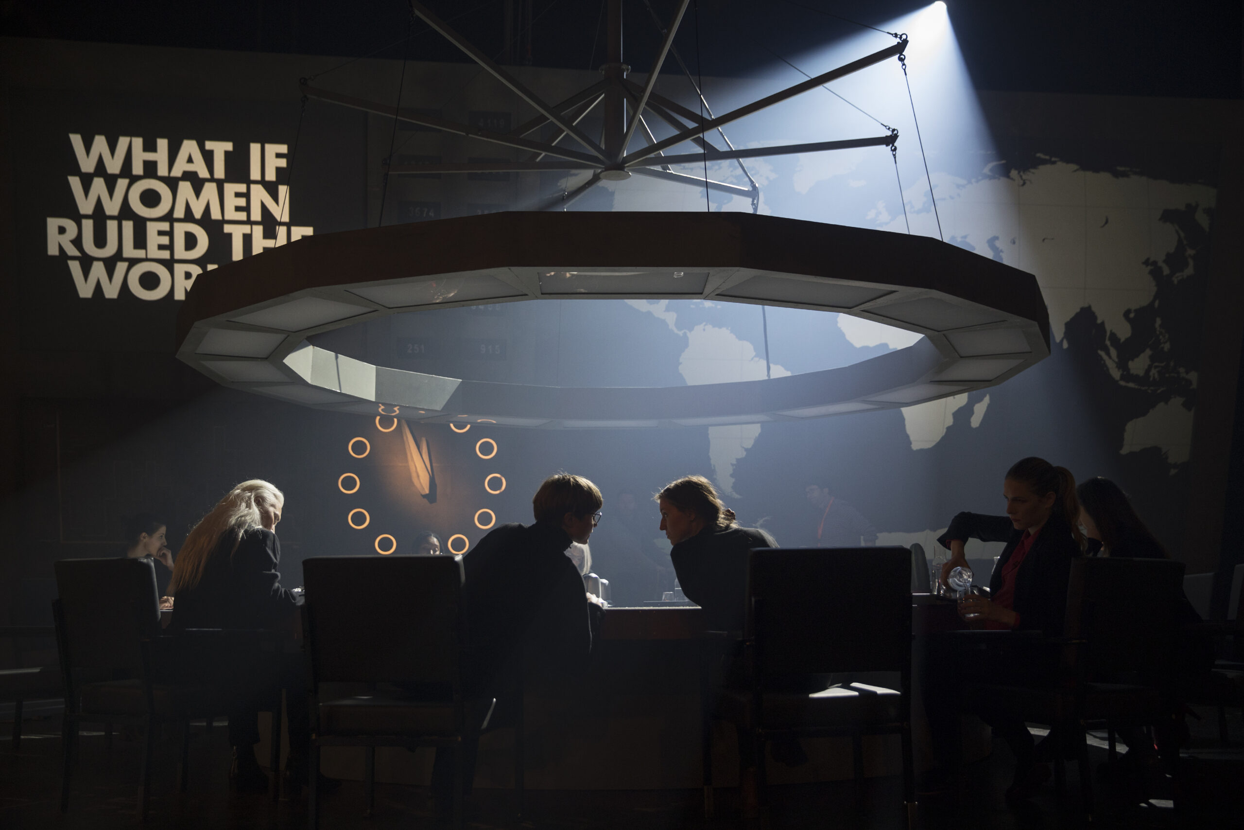 Μια από τις κοινές καταγεγραμμένες αντιδράσεις απέναντι στο έργο, που αντικατοπτρίζει και ένα από τα συνηθέστερα σχόλια στον τίτλο της ομότιτλης σειράς εκθέσεων του ΕΜΣΤ, δεν αφορά το φύλο (γυναίκες) αλλά την πράξη (κυβερνούσαν τον κόσμο). Το ίδιο ερώτημα αντιμετωπίζεται στο έργο βίντεο της Yael Bartana Two minutes to midnight, ένα έργο που παρουσιάστηκε στον χώρο προβολών του ΕΜΣΤ. Το έργο χρησιμοποιεί ως αφορμή το υποθετικό σενάριο της αντιμετώπισης μιας παγκόσμιας απειλής προερχόμενης από έναν παράφρονα πλανητάρχη για την πραγματοποίηση μιας σύσκεψης έκτακτης ανάγκης ανάμεσα σε πραγματικές γυναίκες εμπειρογνώμονες διαφορετικών πεδίων. Το ρολόι πριν τα μεσάνυχτα δείχνει μόλις δυο λεπτά ακόμα πριν από μια παγκόσμια καταστροφή. Η αντιμετώπιση της παγκόσμιας απειλής από το γυναικείο συμβούλιο είναι ριζοσπαστικά διαφορετική και διαλεκτική και ανοίγει ξανά ζητήματα όπως ο παγκόσμιος αφοπλισμός, η αποκλιμάκωση και η ηθική αντιμετώπιση σε μια πολεμική πρόκληση. Αυτές είναι οι δράσεις που θα μας δώσουν περισσότερο χρόνο, ενώ όσο αναρωτιόμαστε αν πρέπει να κυβερνήσουν οι γυναίκες ή όχι, μένουμε με τον (φανταστικό;) μανιακό άνδρα πλανητάρχη πλησιάζοντας όλο και πιο κοντά στη στιγμή της καταστροφής.