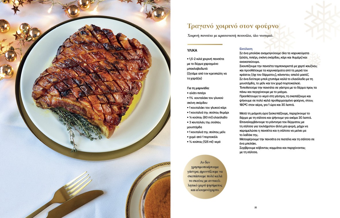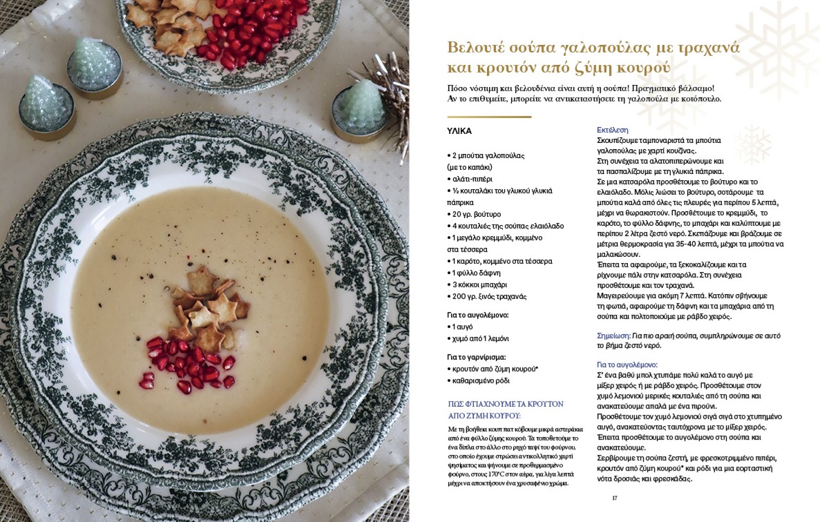 Τη ρωτάω ποια συνταγή θεωρεί την «καρδιά» του βιβλίου: «Η γεμιστή γαλοπούλα. Όχι μόνο για τη γεύση της, αλλά για τη στιγμή που παίρνει τη θέση της στο κέντρο του τραπεζιού, για τα επιφωνήματα έκπληξης και θαυμασμού, για τα σχόλια που επαναλαμβάνονται κάθε χρόνο: «υπέροχη η γαλοπούλα σου και φέτος, μαμά».