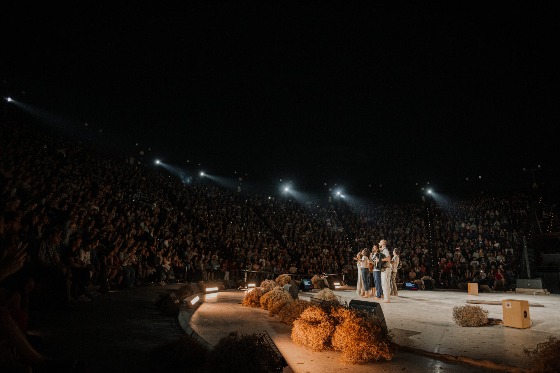 Για τις δύο ημέρες, το Θέατρο Γης θα μεταμορφωθεί σε ένα σύγχρονο «αρχαίο θέατρο» για να φιλοξενήσει στο «κοίλον» του το μεγάλο καλλιτεχνικό γεγονός. H Νατάσσα Μποφίλιου ως «κορυφαία του χορού» μεταμορφώνεται σε τραγική μάνα, σύζυγο, αδελφή ξεναγώντας το κοινό στο έργο του Μίκη Θεοδωράκη. Και με όχημα τις «μεσογειακές» ενορχηστρώσεις του Θέμη Καραμουρατίδη, το ερμηνευτικό σύνολο επτά ερμηνευτών και μουσικών και το περιστρεφόμενο σκηνικό του Κωνσταντίνου Λαμπρίδη, οι θεατές μεταφέρονται θεατρικά σε βαθιά ελληνικές και ιστορικές στιγμές που κατέγραψαν τα τραγούδια του μεγάλου συνθέτη.