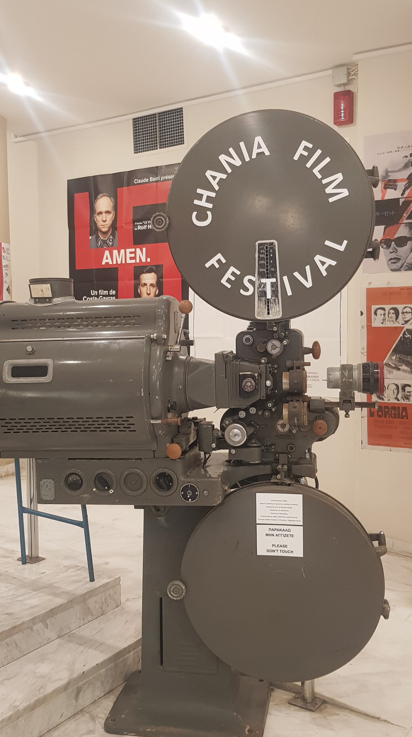 Κάτι ακόμα που πρόσεξα είναι ότι τα παιδιά σε όλες τις δράσεις και προβολές του φεστιβάλ δεν ασχολούνταν σχεδόν καθόλου με τα κινητά τους (Δεν θα έλεγα το ίδιο για τους ενήλικες…). Πήγα στην έκθεση φωτογραφίας του Ηλία Μπουργιώτη για τον Θεόδωρο Αγγελόπουλο και στη ξενάγηση στις μηχανές του κινηματογράφου – μια εξαιρετική και σπάνια έκθεση που επιμελήθηκε ο Λευτέρης Λαμπράκης στο πνευματικό κέντρο του Δήμου Χανίων, όπου διεξάγονται όλες οι εκδηλώσεις και προβολές του φεστιβάλ. Εκεί συνάντησα παιδιά λυκείου παραξενεμένα και βαριεστημένα στην αρχή, εντυπωσιασμένα στη συνέχεια, παιδιά για τα οποία οι εκτυπωμένες φωτογραφίες φτάνουν ίσως μέχρι ένα οικογενειακό κάδρο στο σπίτι.