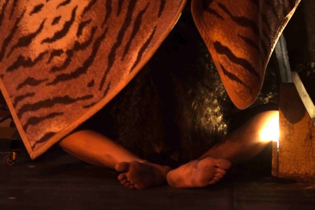 Ο σκηνοθέτης, Γιώρκος Ονησιφόρου και η ηθοποιός Έβελυν Ασουάντ μιλούν για την ανάγκη να γίνει το ανείπωτο ιστορία, μνήμη, αφήγηση που αγγίζει σώμα με σώμα. Για εκείνο το κάτι που κουβαλάμε βαθιά και αναζητά φωνή, φόβο, πόλεμο, ντροπή, επιθυμία. Κι ίσως η παρηγοριά, βρίσκεται ακριβώς στο παραμύθι: στη δυνατότητά του να λυτρώνει, να ωθεί τον άνθρωπο να ταξιδέψει, να χαθεί και να ξαναγεννηθεί. Να επιζήσει· να μείνει ζωντανός.