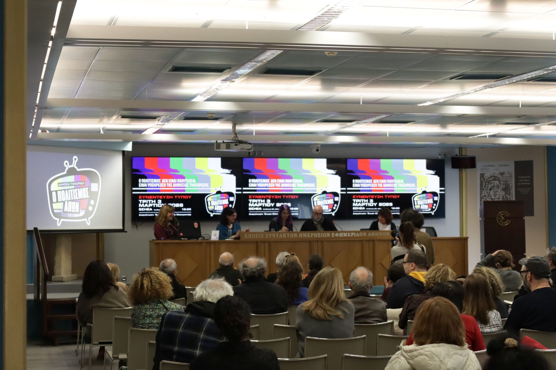 Στο πλαίσιο της πρωτοβουλίας «Ο Πολιτισμός Απών», η ΕΕΝ προχώρησε σε καταγραφή του προγράμματος της δημόσιας τηλεόρασης. Πήραν μέρα μέρα και μέτρησαν τους μήνες Νοέμβριο – Δεκέμβριο 2025, Ιανουάριο 2026, τα αποτελέσματα ήταν απογοητευτικά. Τον Νοέμβριο του ’25 η ΕΡΤ3 πρόβαλε το 40% προγράμματα ντοκιμαντέρ. 32% ήταν των μισθωμένων ξένων και μόλις 8% ελληνικά. Τον Δεκέμβριο, 31% ξένο μισθωμένο 6% ελληνικά. Τον Ιανουάριο 29% ξένο μισθωμένο 9% πρόγραμμα ελληνικής παραγωγής.