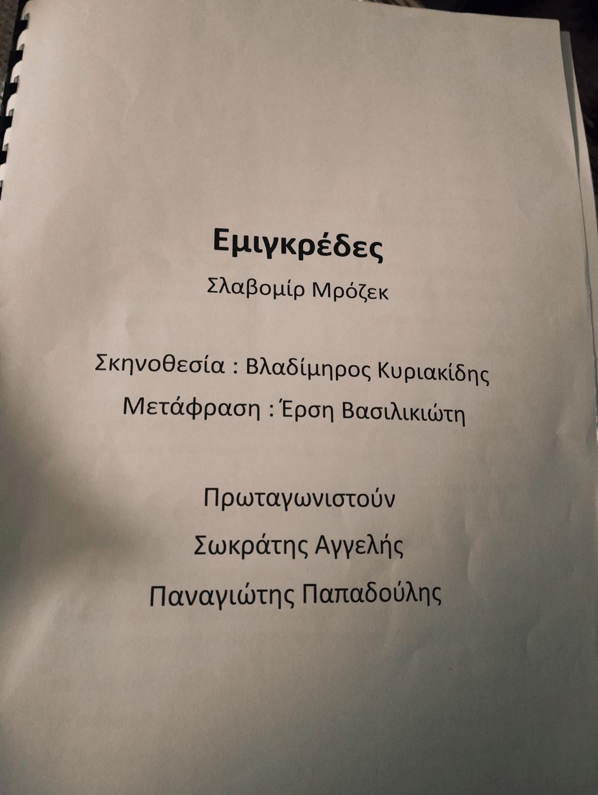 O Σωκράτης Αγγελής και ο Παναγιώτης Παπαδούλης μοιράζονται το Ημερολόγιο προβών για την παράσταση «ΕΜΙΓΚΡΕΔΕΣ» που παρουσιάζεται στο νέο θέατρο ΜΕΤΣ: