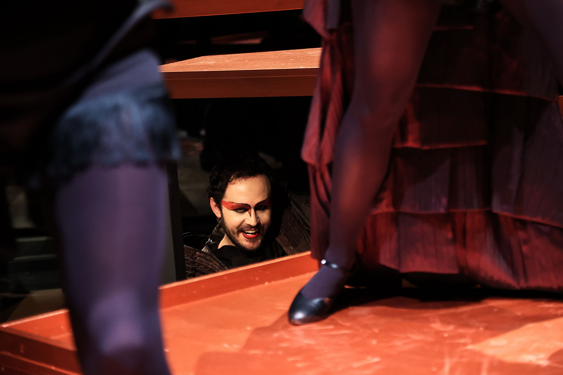 Η αναζήτηση του τερατώδους στον άνθρωπο, είναι που μας ενδιαφέρει. Το κοίταγμα προς τα μύχια της ανθρώπινης ύπαρξης, εκεί, στην πηγή της ύβρης, στη ρίζα κάθε σκοτεινής ενόρμησης, κάθε άμετρης επιθυμίας. Πώς η τέχνη μελετά και αποκαλύπτει το τερατώδες, πως τολμάει να ρίξει φως στα ερεβώδη σκοτάδια του ανθρώπινου αινίγματος; Το σαρκαστικό στοιχείο και ο αυτοσαρκασμός που προϋποθέτει, ορίζουν την πιο βίαιη, αλλά και πιο ειλικρινή μορφή αποκάλυψης αυτής της περιοχής. Η σπουδή πάνω στην ανθρώπινη τερατωδία θέτει τα θεμέλια της παράστασής μας και ανοίγει ένα νέο τοπίο στην έρευνά μας.