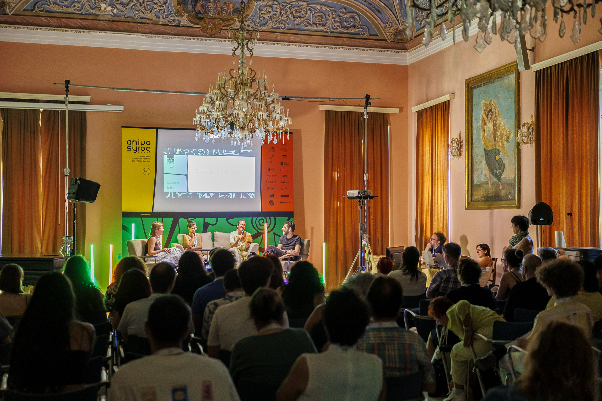 Τη σκηνή της Αγοράς του ANIMASYROS καταλαμβάνουν και φέτος τα Greek Animation Talks, όπου Έλληνες δημιουργοί μιλούν για το έργο τους, τις προκλήσεις της δημιουργικής διαδικασίας και μοιράζονται καλές πρακτικές.