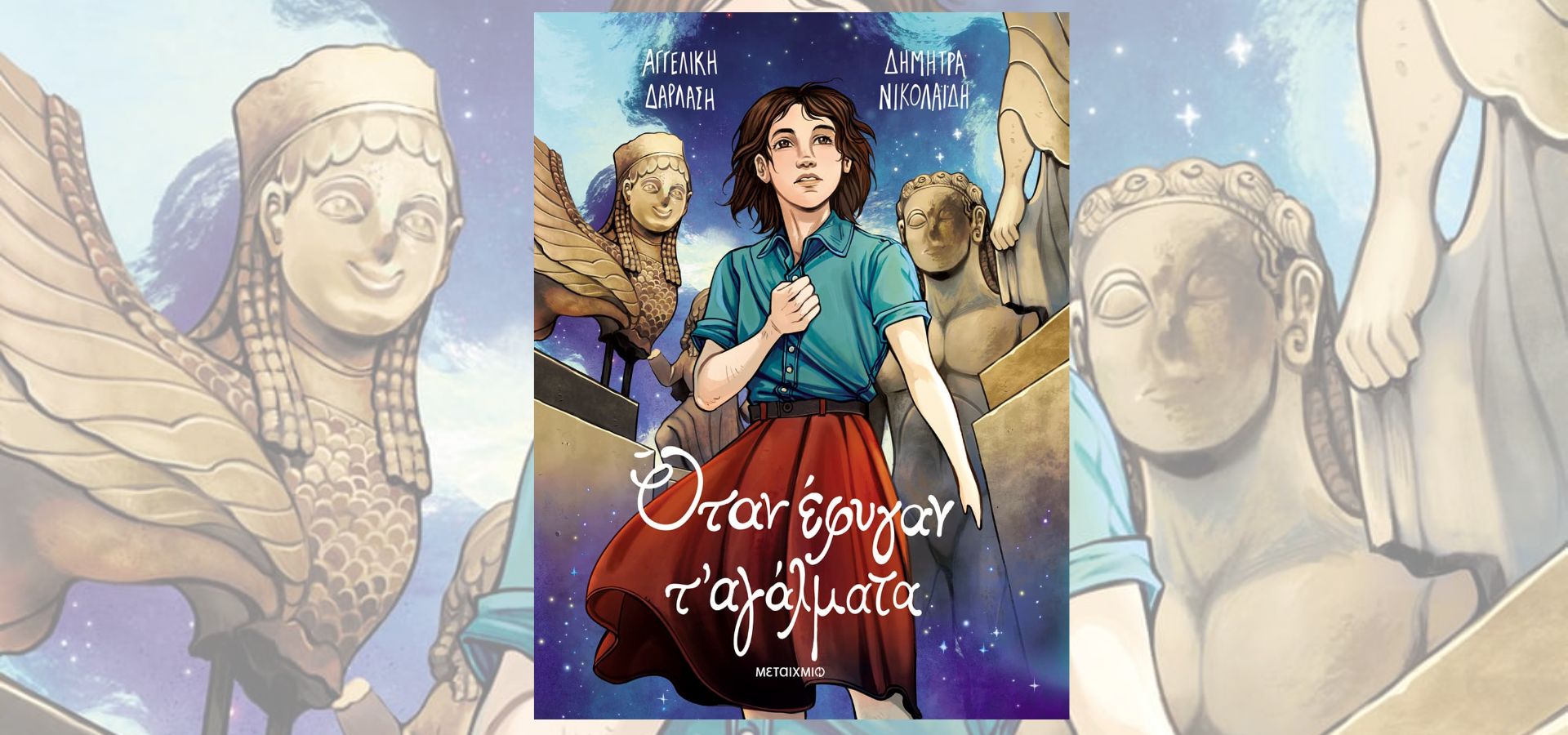 Υπάρχουν ιστορίες που παραμένουνε επίκαιρες, δεν παλιώνουν παρά συνεχίζουν να συγκινούν γιατί πολύ απλά μιλούν για όσα μένουν σταθερά μέσα μας: τη φιλία, τον φόβο, την ανάγκη να προστατεύσουμε αυτό που αγαπάμε. Μια τέτοια ιστορία είναι το Όταν έφυγαν τ’ αγάλματα της Αγγελικής Δαρλάση. Δέκα χρόνια μετά την πρώτη του κυκλοφορία και με περισσότερα από 20.000 αντίτυπα να έχουν βρει τον δρόμο τους σε μικρούς και μεγάλους αναγνώστες, το μυθιστόρημα επιστρέφει σε μια νέα, συναρπαστική μορφή: ως graphic novel, διασκευασμένο από την ίδια τη συγγραφέα και εικονογραφημένο με ευαισθησία και κινηματογραφική δύναμη από τη δημιουργό κόμικς Δήμητρα Νικολαΐδη.