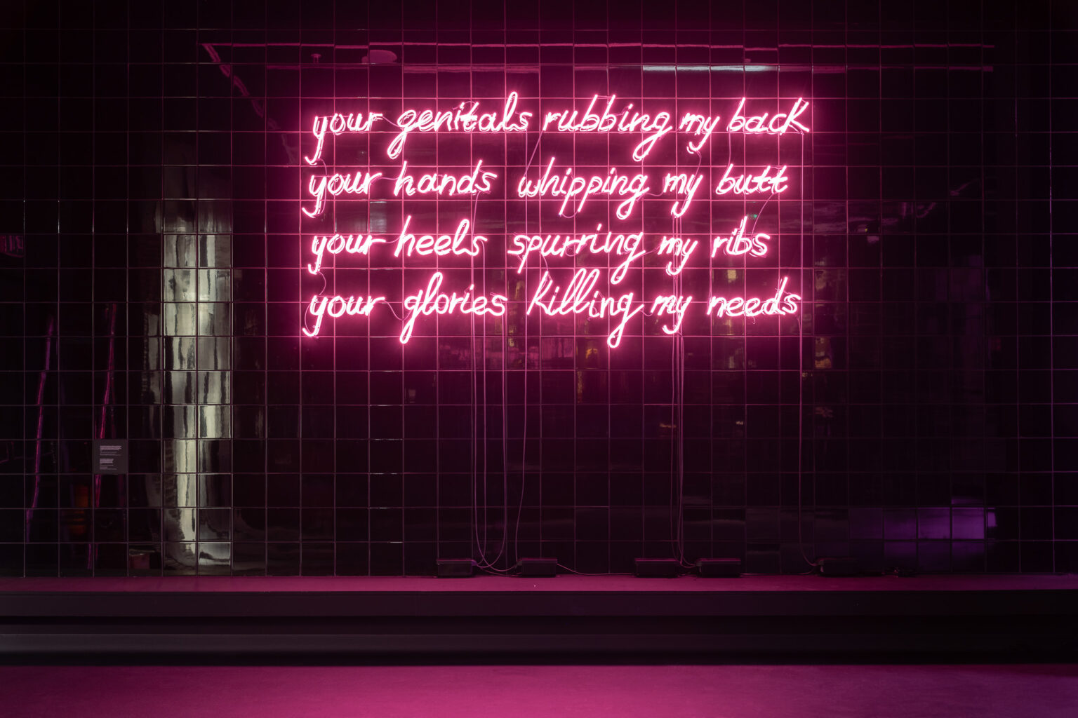 Η πρώτη ατομική έκθεση της καλλιτέχνιδας σε ελληνικό μουσείο και ίσως από τις πιο πολυφωτογραφημένες φετινές εκθέσεις. Και δικαίως γιατί η Ράφα επεξεργάστηκε τη σχέση του ανθρώπου με τα άλογα και συνέθεσε μια μεθυστική, άκρως εντυπωσιακή εγκατάσταση με γλυπτικά έργα, έργα με κείμενο, καθώς και ένα νέο δικάναλο φιλμ γυρισμένο στις άδειες εγκαταστάσεις ενός ιπποδρόμου. Και μπορεί το άλογο να ήταν απόν αλλά ήταν εκεί η επιθυμία, η κυριαρχία, η φροντίδα, η υποταγή, η αγάπη, ο έλεγχος, ο ερωτισμός, ανάμεσα σε μπότες ιππασίας, σέλες και χαλινάρια σε παράταξη. Θυμάμαι τις υφές, τις αντανακλάσεις, τους ροζ και μαύρους χρωματισμούς, τους φωτισμούς και αυτά ήταν μόνο κάποια από τα στοιχεία που έχτισαν αυτή την απόκοσμη, υποβλητική και συνάμα αισθησιακή ατμόσφαιρα που σε κατέκλυζε με το που έμπαινες στη αίθουσα.