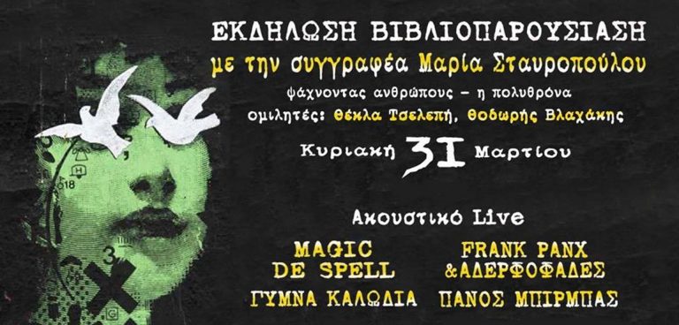 Βιβλιοπαρουσίαση για τη Μαρία Σταυροπούλου και live με Magic De Spell και Πάνο Μπίρμπα στο Cabaret Voltaire