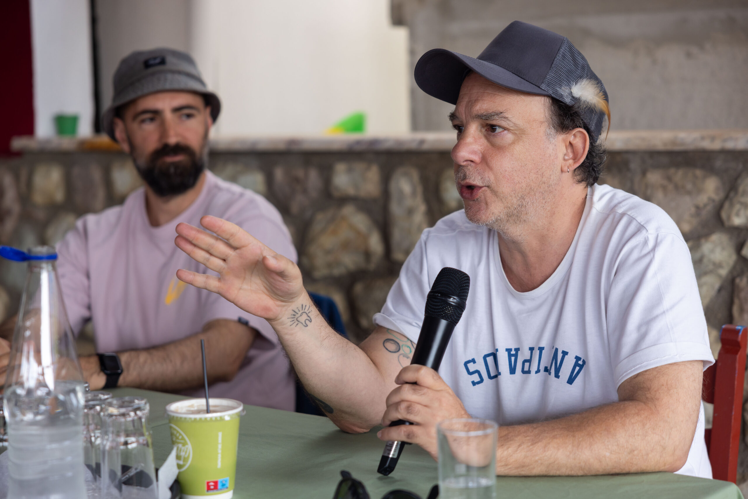 Πρώτος πήρε τον λόγο ο Γιώργος Τσεμπερόπουλος: «Θέλω να ευχαριστήσω τους φίλους μου από τη Βόρεια Εύβοια που έχουν έρθει και από τα γύρω χωριά, και φυσικά όλο το κοινό της Αιδηψού. Τονίζω το κοινό της Αιδηψού, γιατί εμείς οι κινηματογραφιστές είμαστε πλανόδιοι: πηγαίνουμε από φεστιβάλ σε φεστιβάλ και καθόμαστε συνήθως σε καρέκλες, παρακολουθώντας τις ταινίες των συναδέλφων. Το να είμαστε εδώ στη χαροκαμένη Βόρεια Εύβοια και να σας βλέπουμε να γεμίζετε τις αίθουσες των θερινών κινηματογράφων έχει πολύ μεγάλη σημασία για όλους μας. Το σινεμά πρέπει να το βλέπετε πρώτα στη μεγάλη οθόνη. Η μικρή είναι για επαναλήψεις».