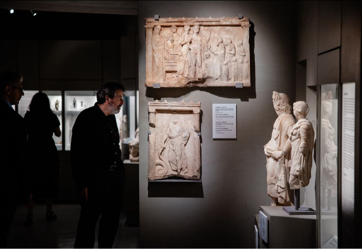 Βρήκανε λυχνάρια πολλά μα τοποθέτησαν εκείνα που μας δείχνουν τη διαρκή κατοίκηση της περιοχής από τον 5ο αιώνα π.Χ μέχρι τον 12ο αιώνα μ.Χ. Λυχνάρια απλά, άλλα πιο σύνθετα, πήλινα τα πιο πολλά μα και γυάλινα που δεν είχα ξαναδεί από κοντά. Την έκθεση συμπληρώνουν πέρα από τα αντικείμενα οι πληροφορίες και οι καλαίσθητες εικονογραφήσεις μέσα στις προθήκες. Σαν να βλέπεις σκιές ανθρώπων που έχουν εισχωρήσει πίσω απ’ το γυαλί και σου δείχνουν αυτό που λείπει. Άλλες φορές εξυπηρετούν στο να δεις ολόκληρο το άγαλμα του Διονύσου κι ας έχει βρεθεί μόνο το χέρι του που βαστά έναν κάνθαρο, το αγγείο σε σχήμα ποτηριού που αποτελεί σύμβολο της λατρείας του.