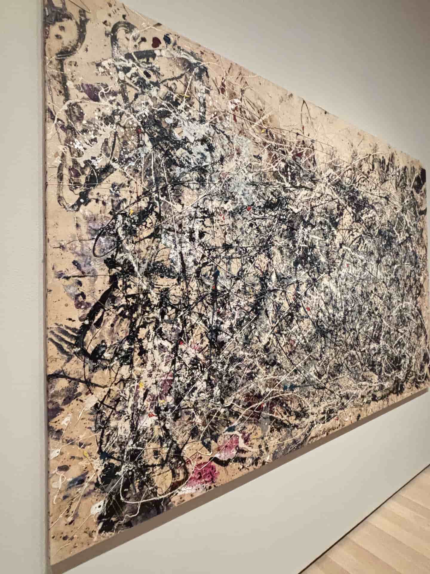 Το Number 1A, 1948, με διαστάσεις σχεδόν τρία μέτρα πλάτος, είναι από τα πρώτα μεγάλα έργα όπου αυτή η μέθοδος φτάνει σε ωριμότητα. Οι μαύρες και λευκές γραμμές απλώνονται με ταχύτητα πάνω σε στρώματα από μπεζ και γκρι. Κι όμως, μέσα σε αυτή την καταιγίδα, υπάρχει ακρίβεια και αυστηρότητα: κάθε γραμμή μένει ευδιάκριτη, διεκδικώντας την ατομικότητά της.