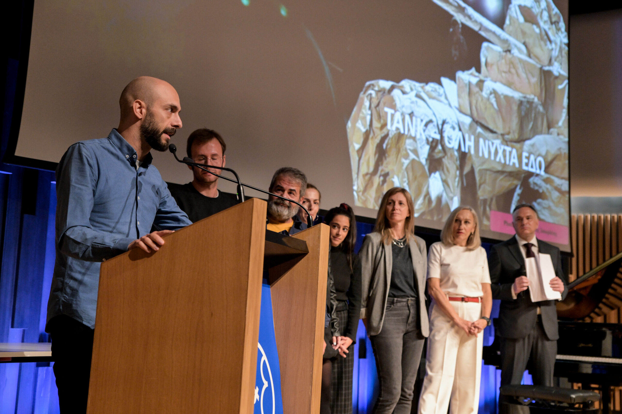 ΤΑΝΚ – Όλη Νύχτα Εδώ βασισμένο στο βιβλίο Όλη Νύχτα Εδώ σε επιμέλεια Ιάσονα Χανδρινού, δραματουργία της ομάδας RMS MATAROA, σκην. Μάνος Βαβαδάκης, ομάδα RMS MATAROA, Θέατρο Τέχνης Καρόλου Κουν)