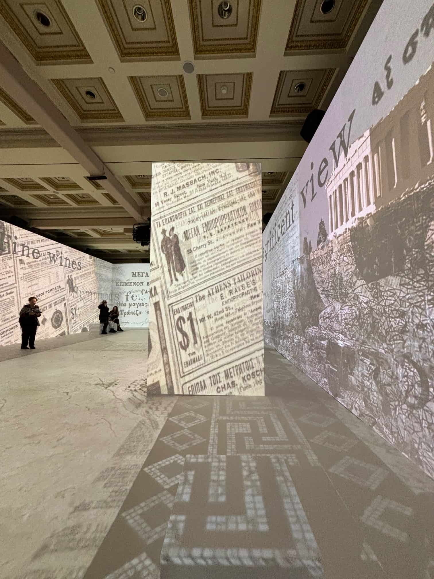 Οδηγούμαι στη μεγάλη αίθουσα όπου ένα φαντασιακό και πολυδιάστατο σκηνικό με τη χρήση projection mapping σε πολλαπλές επιφάνειες, έχει στηθεί για να μας οδηγήσει 150 χρόνια πίσω. Στέκομαι στο κέντρο της αίθουσας και όλα συνεχώς μεταβάλλονται, μεταμορφώνονται το ένα μέσα από το άλλο, όλα τα στοιχεία σε ένα τέλεια συγχρονισμένο χορό, ξεκλειδώνουν την ιστορία και μας μεταφέρουν σε ένα νοερό ταξίδι στον χρόνο. Οι τοίχοι, το πάτωμα γεμίζουν χρώματα και κινούμενες εικόνες. Ένα διαδραστικό υπερθέαμα που συνδυάζει εικόνες, ήχους και διηγήσεις έχει ξεκινήσει…